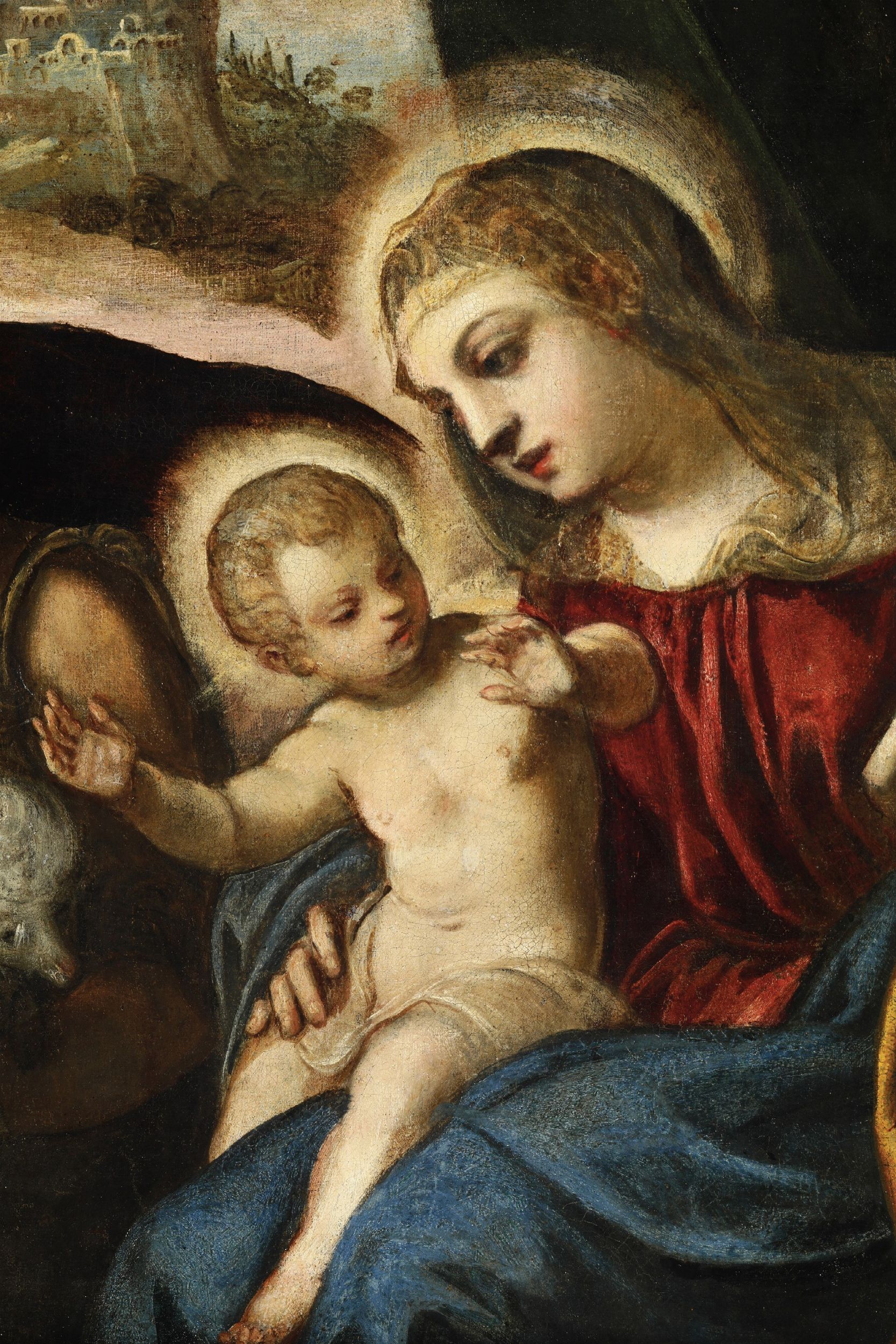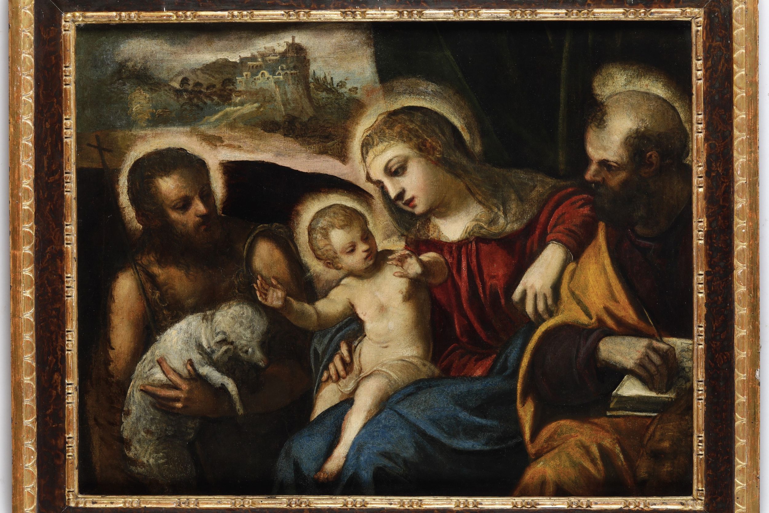 Scuola veneta del XVII secolo Sacra famiglia con San Giovanni Battista