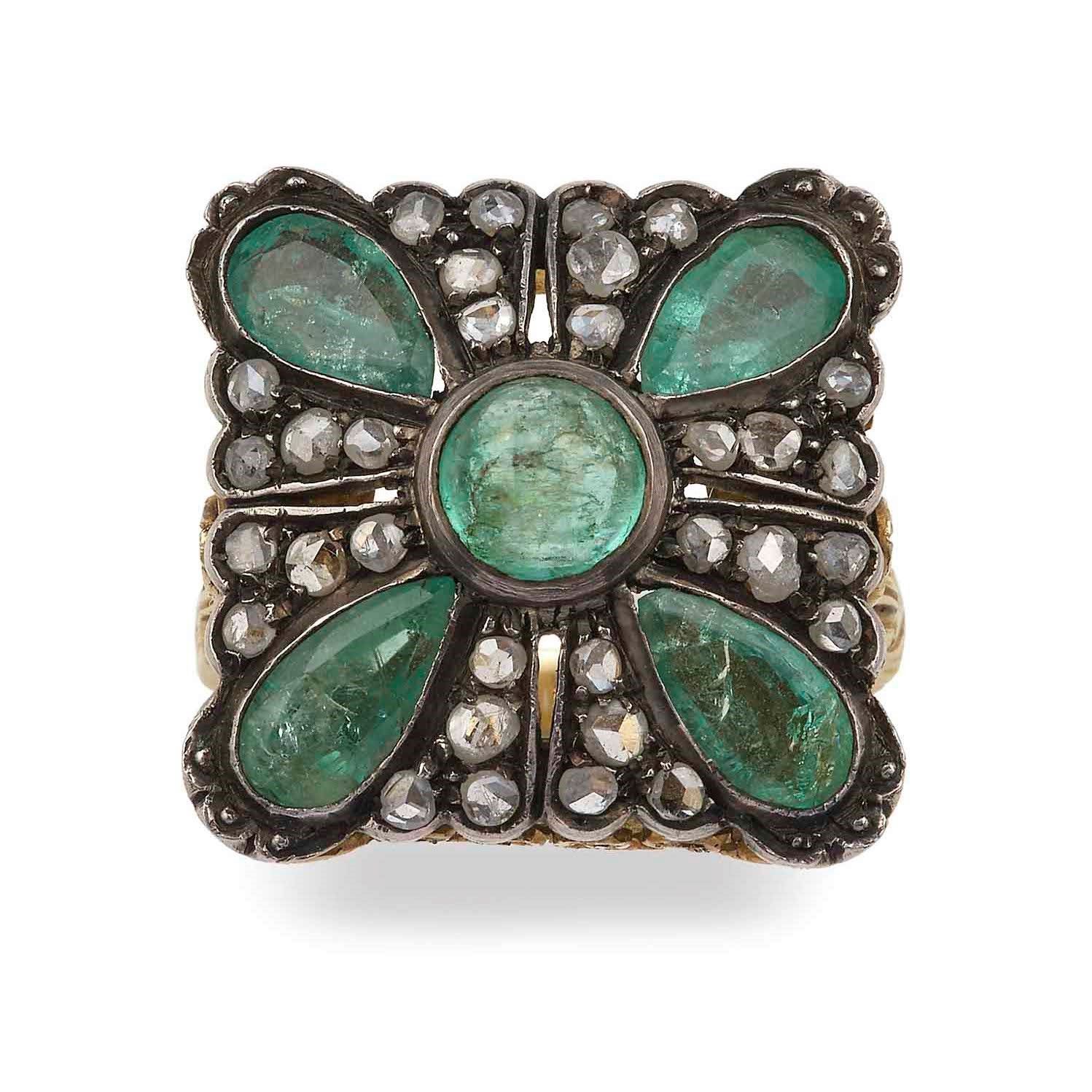 Anello con smeraldo e diamanti taglio rosa