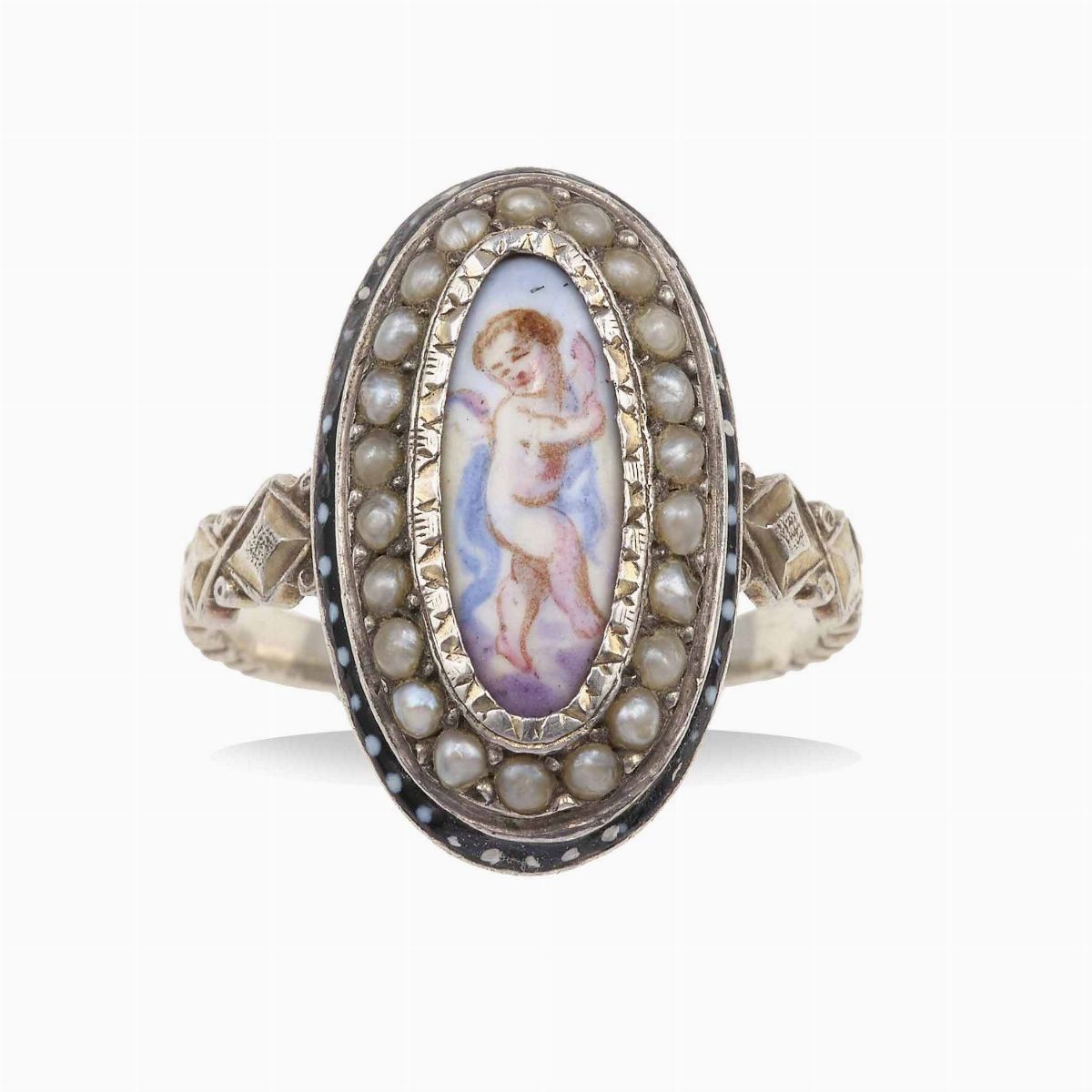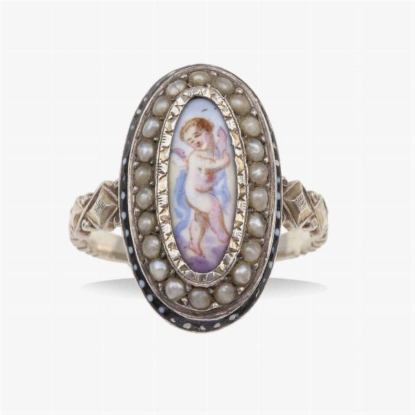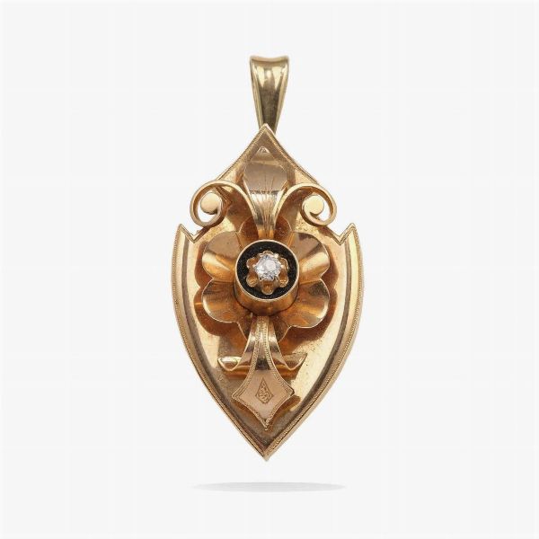 Lotto composto da un pendente, un anello e un paio di orecchini in smalti, diamanti [..]
