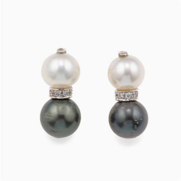 Orecchini con perle bianche, perle Tahiti e piccoli diamanti