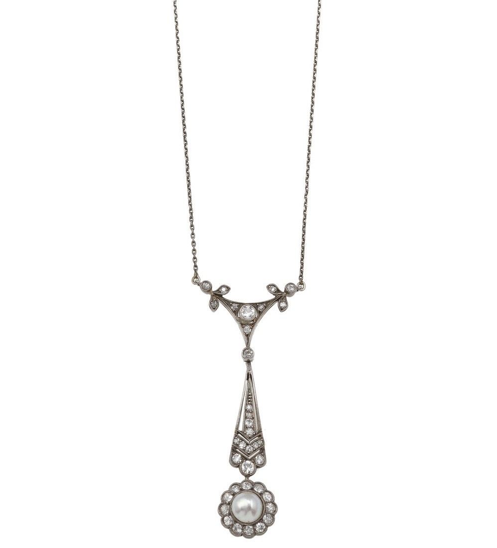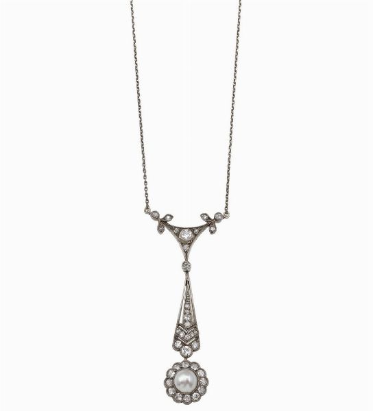 Pendente con diamanti di vecchio taglio e perla