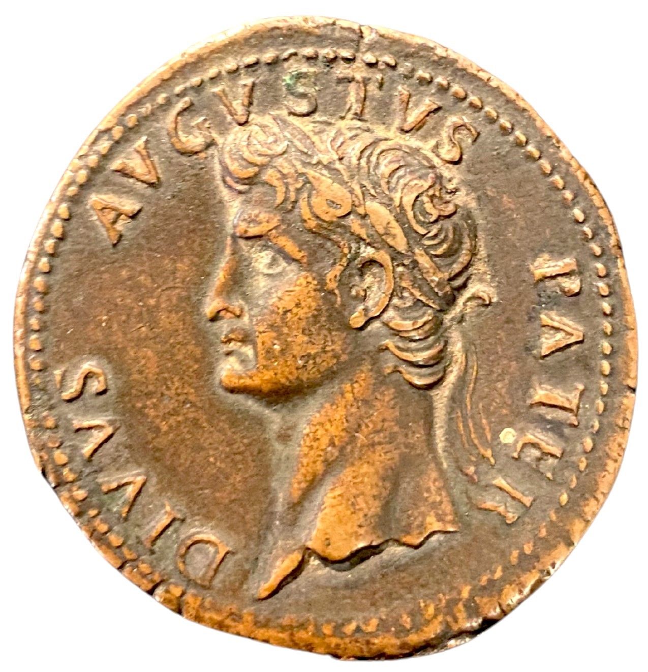 Medaglia in bronzo, patina marrone; mm 33,2; gr 22. Opus Giovanni da Cavino (Padova). D/ DIVVS AVGVSTVS PATER Testa laureata di Augustus a sinistra R/ OB/CIVES/SER B (i n tre righe) in corona di quercia sostenuta da due capricorni; sotto, globo e remo. Bella conservazione.