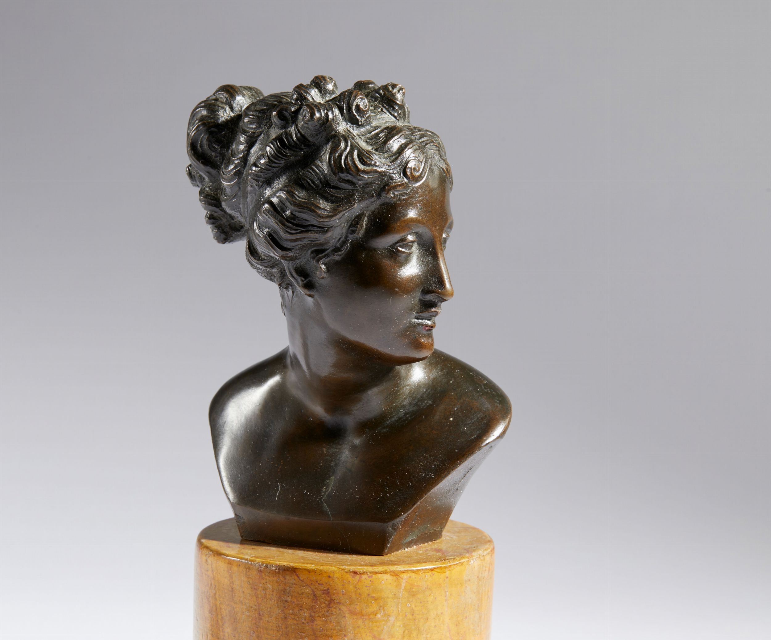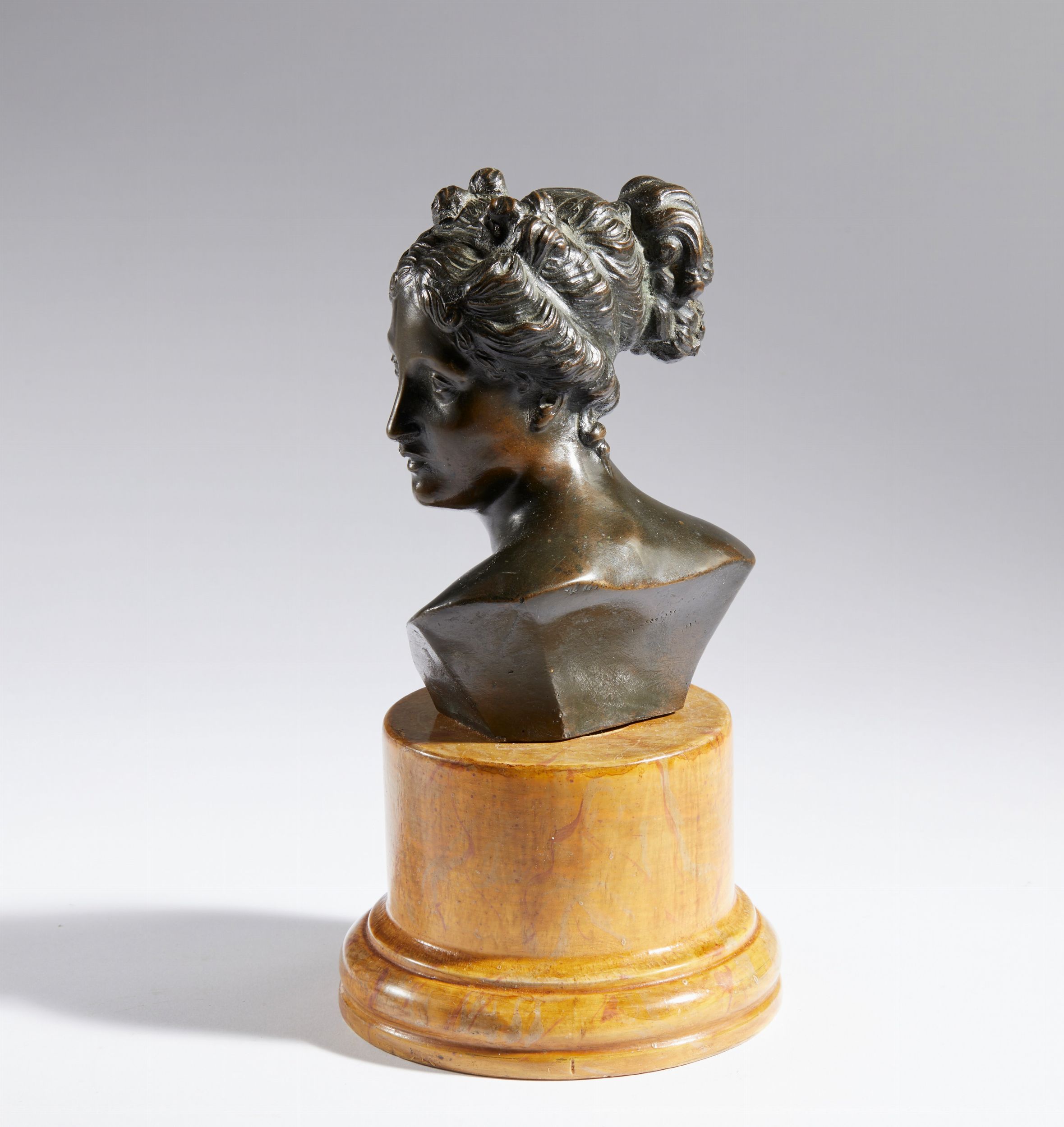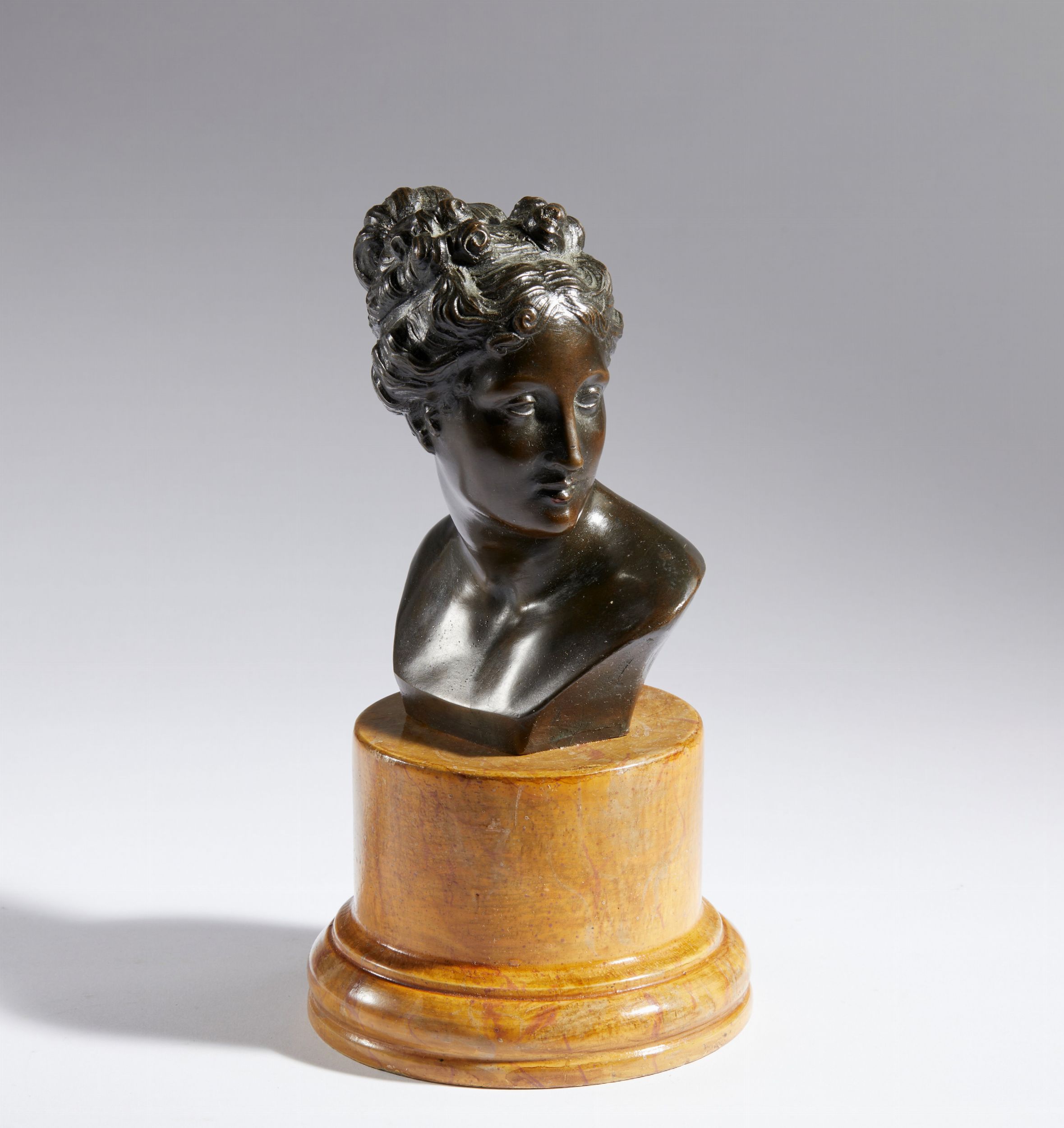 XIX secolo Bronzo patinato nero; 23x11,5x11,5 cm, senza base 15 x 10,5 x 7,5 cm Questo busto è tratto dalla 'Venere italica' realizzata dallo scultore Antonio Canova. L'opera originale è realizzata a corpo intero ed è conservata nella Galleria Palatina di Palazzo Pitti a Firenze.