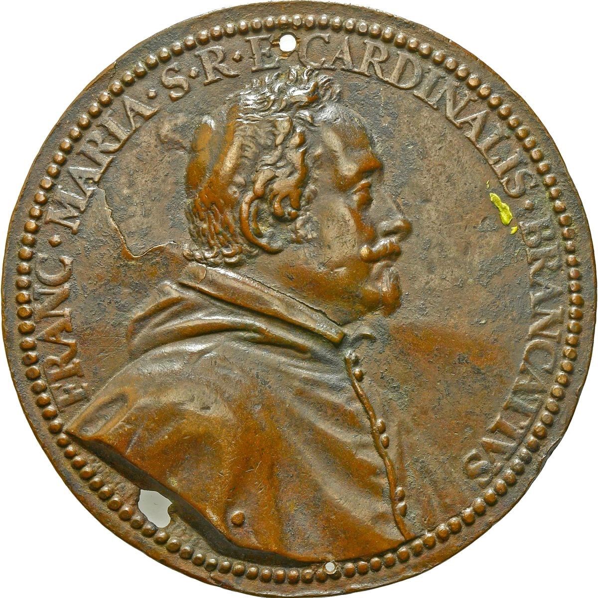 D/ FRANC.MARIA.S.R.I. CARDINALISBRANCATIVS. Busto verso destra, sotto il busto firma non leggibile, contorno di perline. Bibl. Hill-Pollard 1967, n. 482