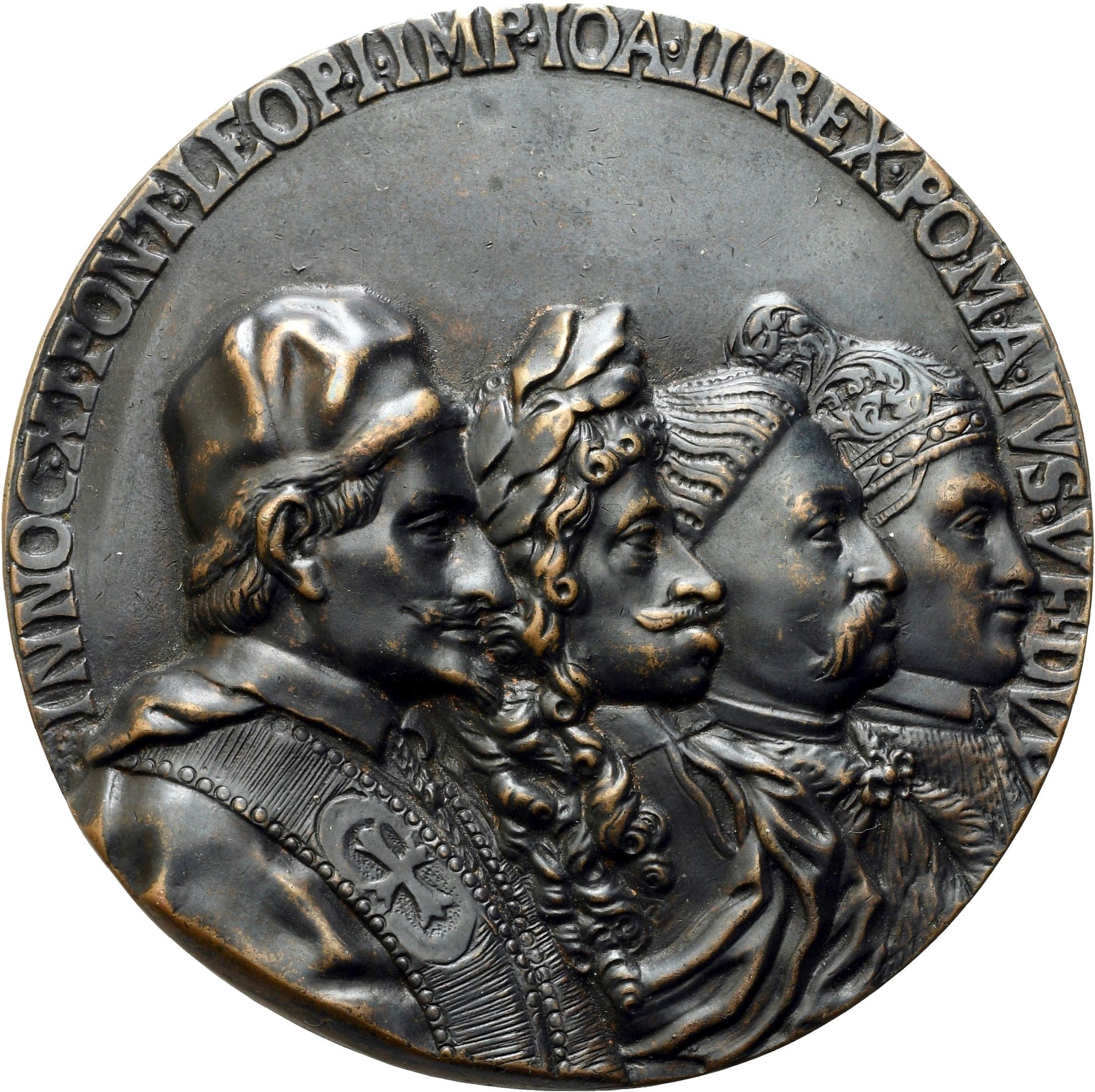 1684 Medaglia uniface in bronzo; mm 79,8. D/ INNOC.XI.PONT.LEOP.I.IMP.IOA.III.REX.POM.A.AIVS.VE.DUX I quattro busti accoltati dei regnanti con veste e copricapo caratteristico delle loro dignità. Rif. Voltolina, 1035 – II 82