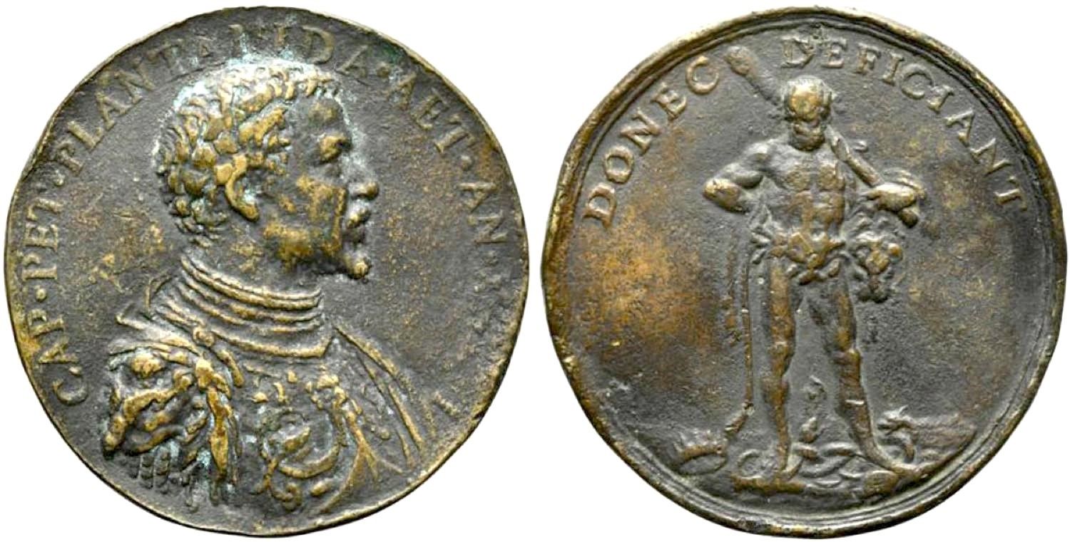 Medaglia in bronzo; mm 48,7; gr 42,5.  Fusione posteriore. D/ CAP. PET. PLANTANIDA. AET. AN. XXXVI . Busto corazzato a destra R/ DONEC DEFICIANT  Ercole stante