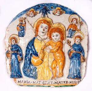 AREA UMBRO MARCHIGIANA SECONDA METÀ XVI SECOLO Placca in ceramica a rilievo, 40 x 40 x 6 cm. Madonna col Bambino [..]