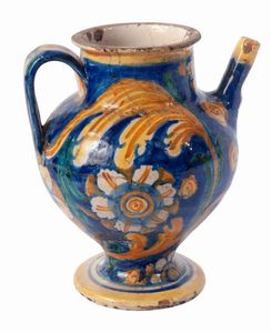 CALTAGIRONE, FINE XVII SECOLO Ceramica, 22 x 10,5 x 11 cm. Corpo globulare rastremato verso il basso con corto [..]