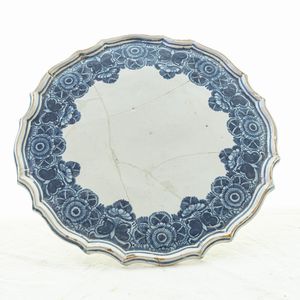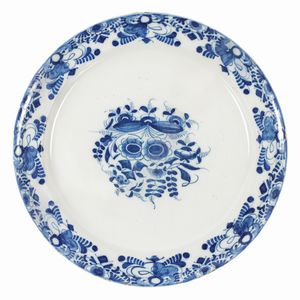 FAENZA, MANIFATTURA FERNIANI METÀ XVIII SECOLO Ceramica bianca e blu, diametro 27,5 x 6 x 10,5 cm. Bordo a sedici [..]