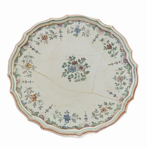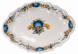 AREA CAMPANA, FINE XVIII SECOLO Ceramica policroma, 40 x 28, 5 x 3 cm. Forma ovale. Bordo polilobato con margine [..]
