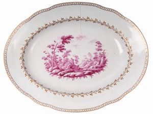MANIFATTURA GINORI 1780/1810 Porcellana, 33,5 x 26 x 3,8 cm. Forma ovale polilobata con appoggio ad anello su [..]