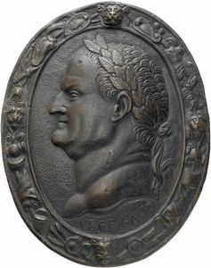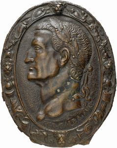 Medaglia uniface in bronzo, patina marrone scuro; fusione antica; mm 69,9; gr 140,9. Molto rara [..]