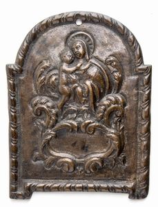 Scuola romana XVI secolo Placchetta rettangolare, patina marrone scuro; mm 66,3 x 53,9; gr 171,9. La Vergine con [..]