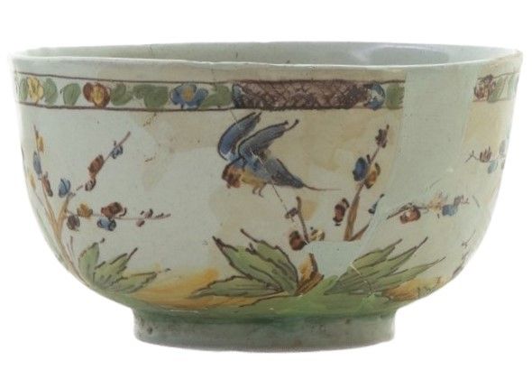 FAENZA, MANIFATTURA FERNIANI, FINE XVIII SECOLO Ceramica policroma, 11 x 6 cm. A forma di campana, con decoro a 'giardino con vaso e colonna spezzata', base ad anello con fondo ribassato. Manifattura Ferniani, Faenza, terzo quarto XVIII secolo. Condizioni: restauri e rifacimenti