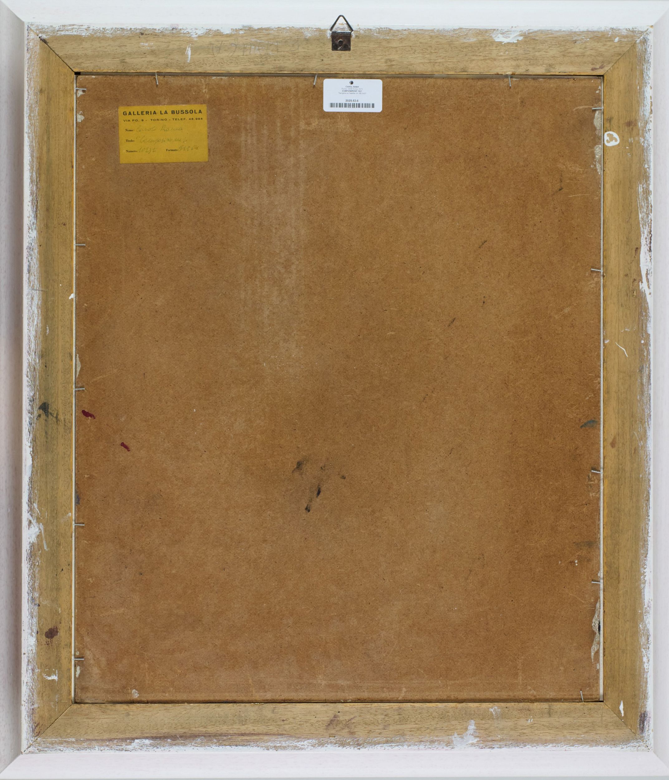 1957 Firma e data in basso a sinistra. Sul verso: etichetta 'Galleria La Bussola', Torino, con descrizione.