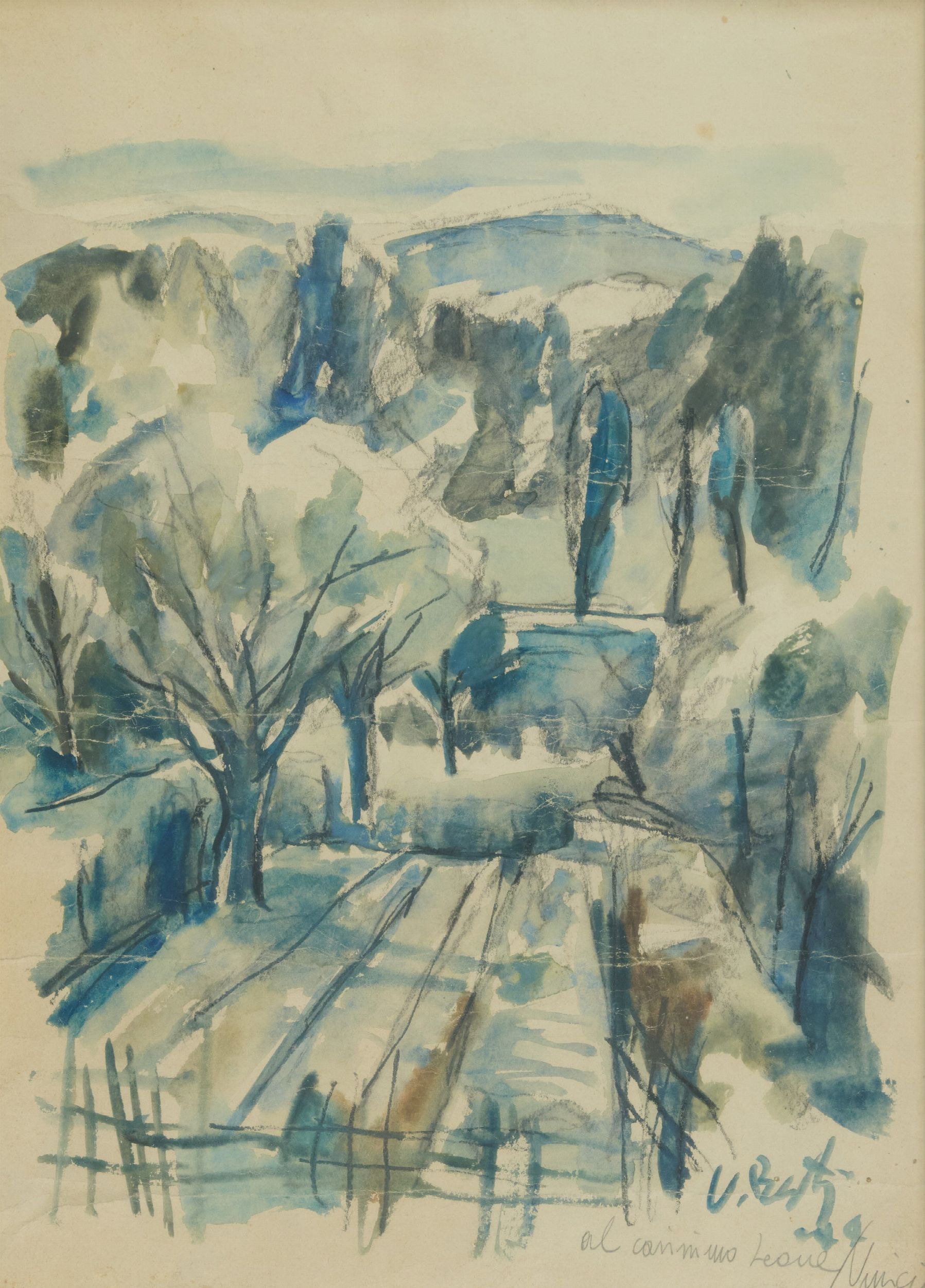 1944 Firma, data e dedica a persona in basso a destra. La carta presenta imperfezioni.
