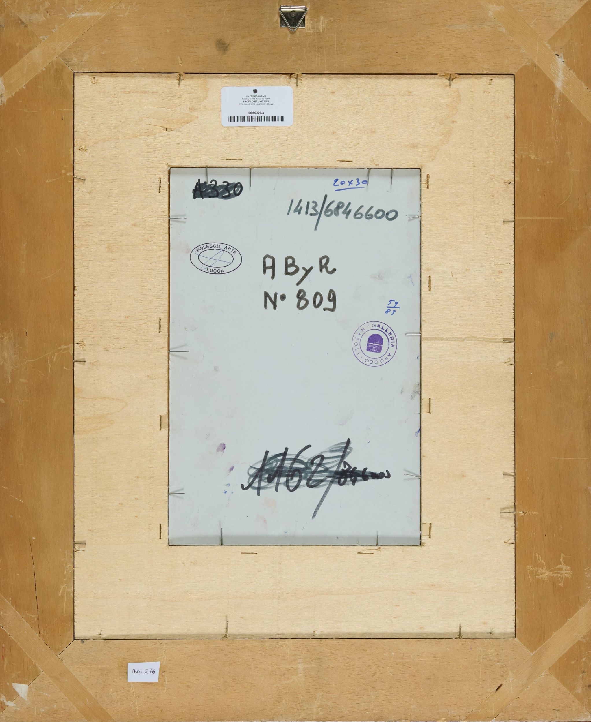 1983 Firmato in alto destra. Sul verso: timbro galleria 'Apogeo', Napoli e timbro 'Poleschi Arte', Lucca.
