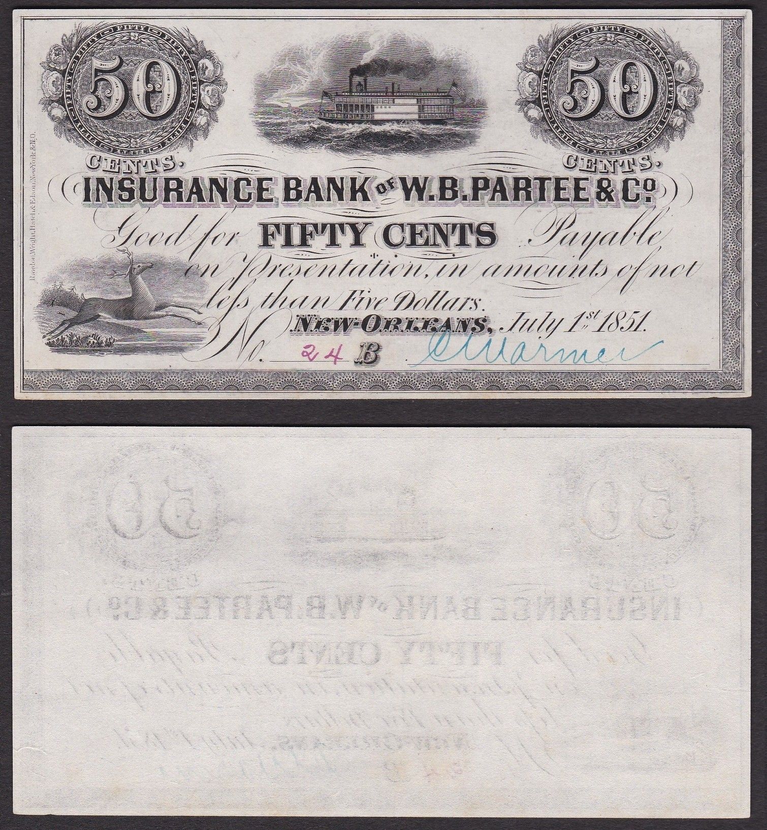 OBSOLETE PAPER MONEY. LOUISIANA NEW ORLEANS - INSURANCE BANK OF W.B.PARTEE AND COMPANY [..]