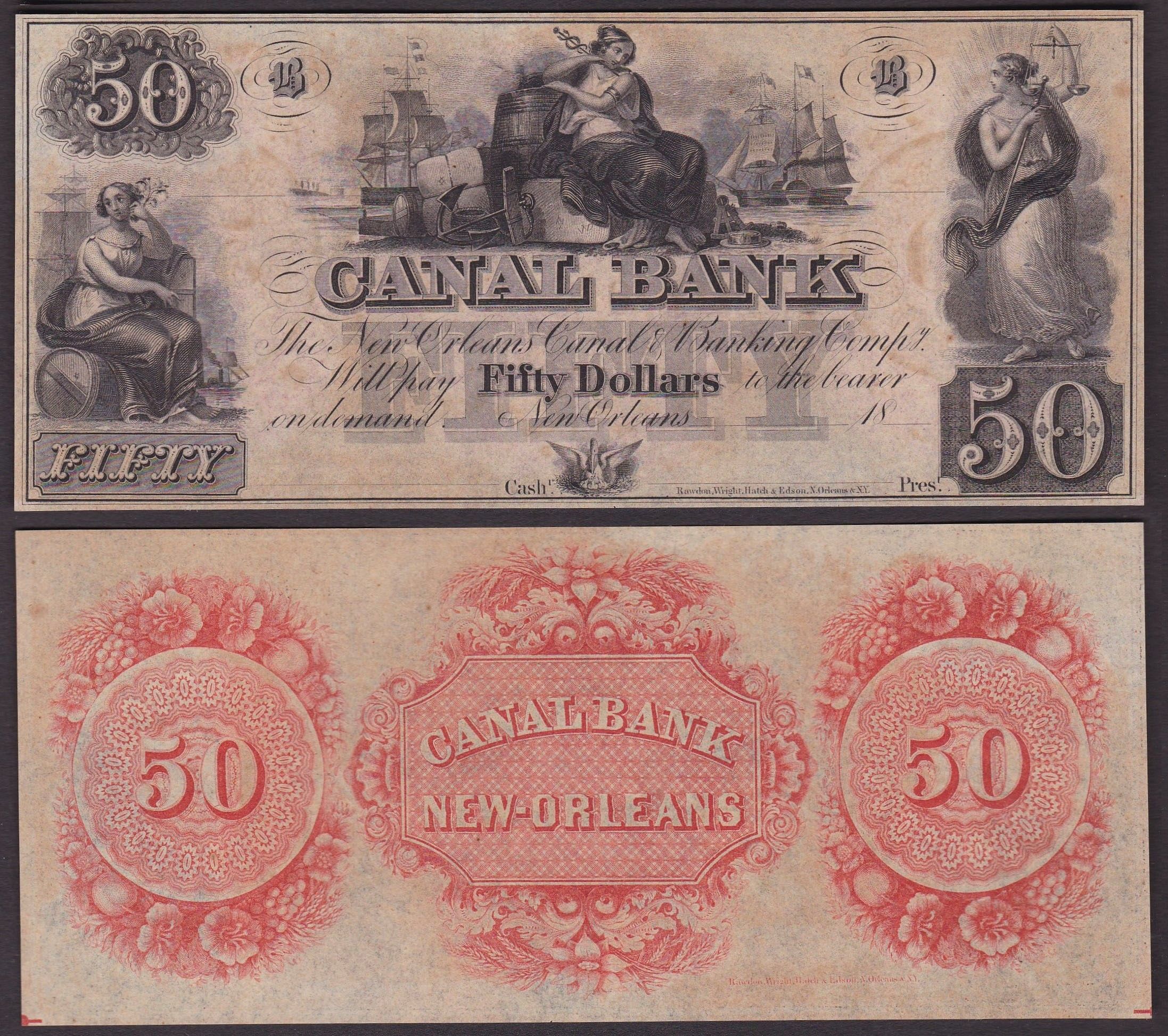 OBSOLETE PAPER MONEY. LOUISIANA NEW ORLEANS - CANAL AND BANKING COMPANY 1831-1870. [..]
