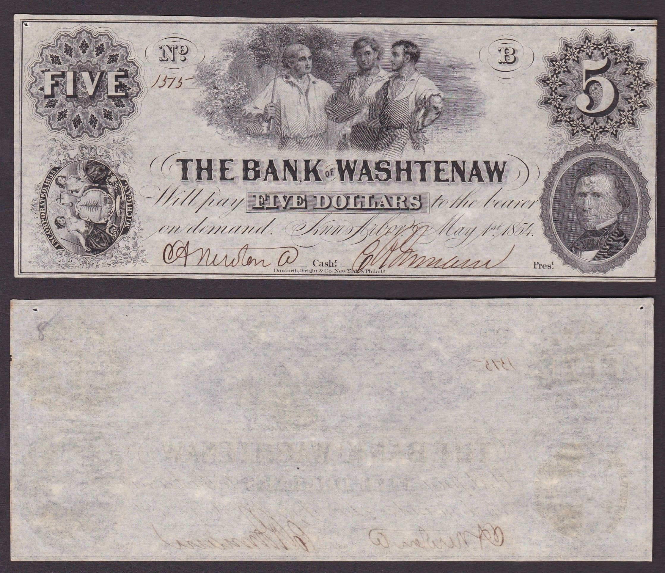 OBSOLETE PAPER MONEY. MICHIGAN ANN ARBOR- THE BANK OF WASHTENAW 1835-1854. Lotto [..]