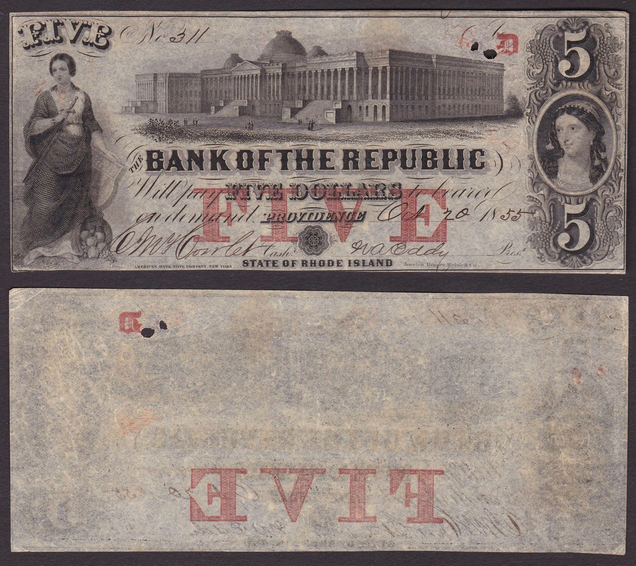 OBSOLETE PAPER MONEY. NEW JERSEY - OHIO - RHODE ISLAND. 1855-1861. Lotto di 3 ba [..]