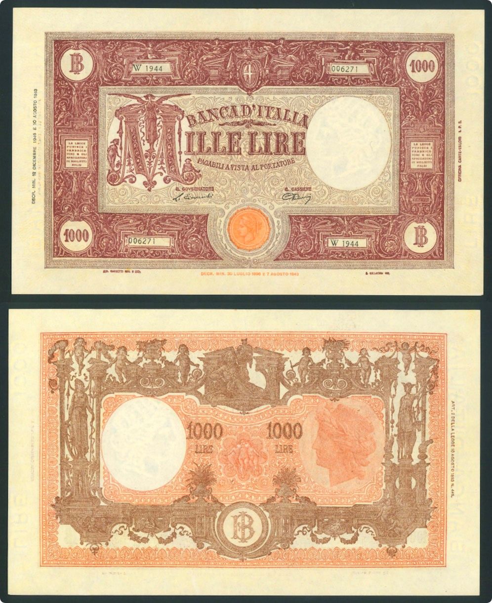 REPUBBLICA ITALIANA, DAL 1946. 1000 Lire tipo “Barbetti” del 19/12 1946.