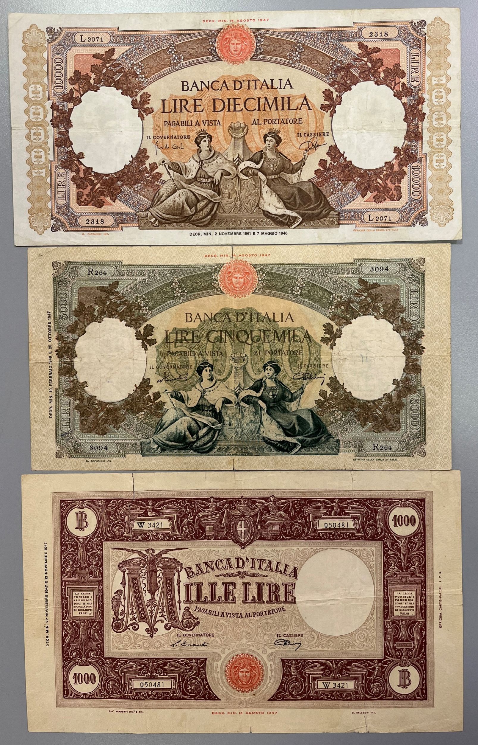 REPUBBLICA ITALIANA, DAL 1946. Lotto di tre banconote.