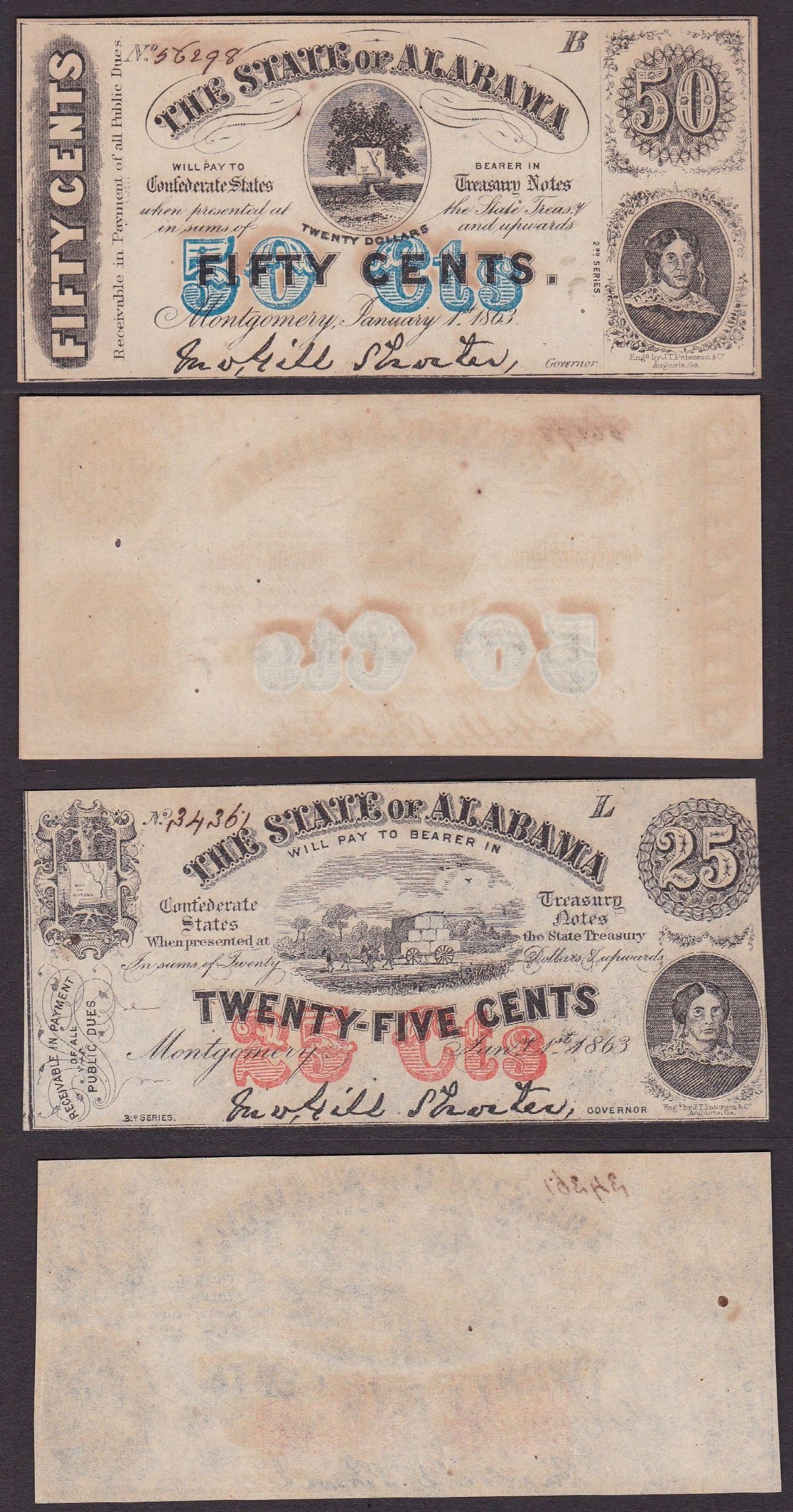 SOUTHERN STATES CURRENCY. ALABAMA CIVIL WAR ISSUES - THE STATE OF ALABAMA 1863. [..]