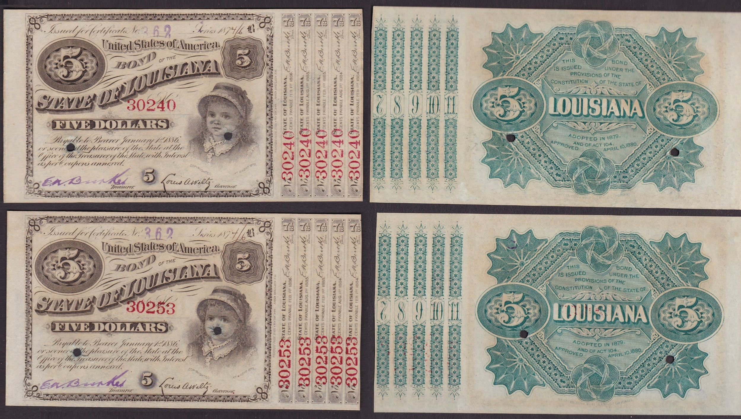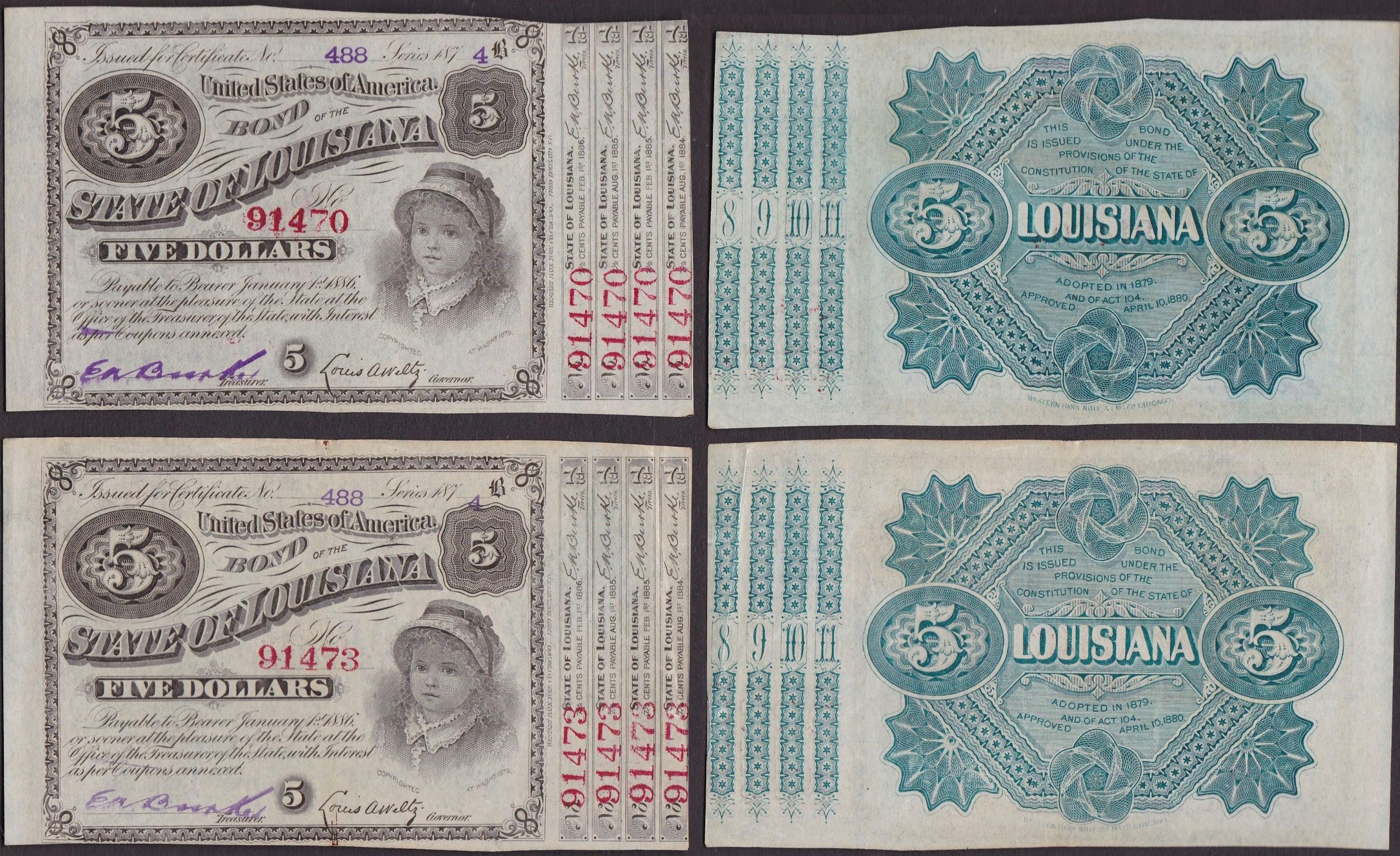 SOUTHERN STATES CURRENCY. LOUISIANA POST CIVIL WAR ISSUES - STATE OF LOUISIANA 1886. [..]