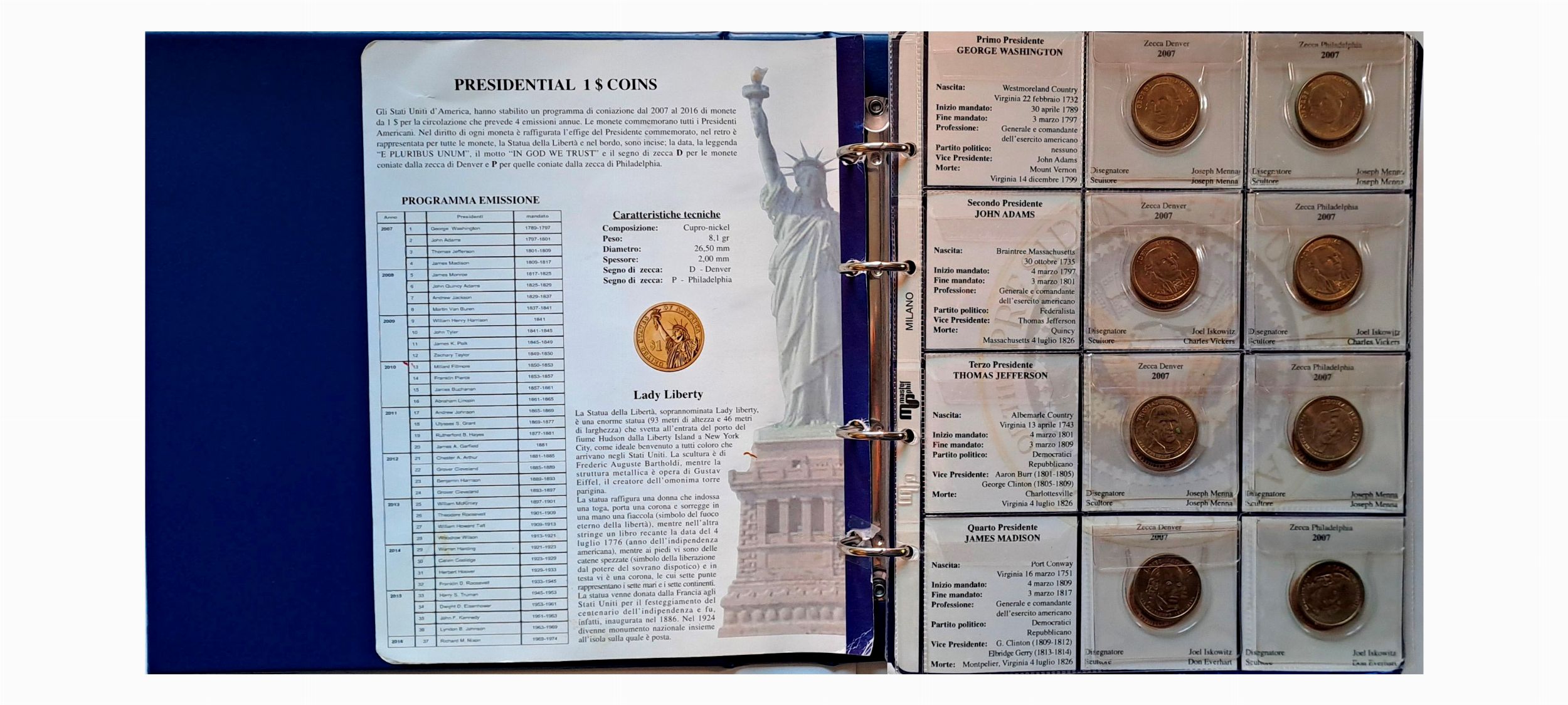 Stati Uniti. Album “Presidential 1 $ Coins –2007-2016”.