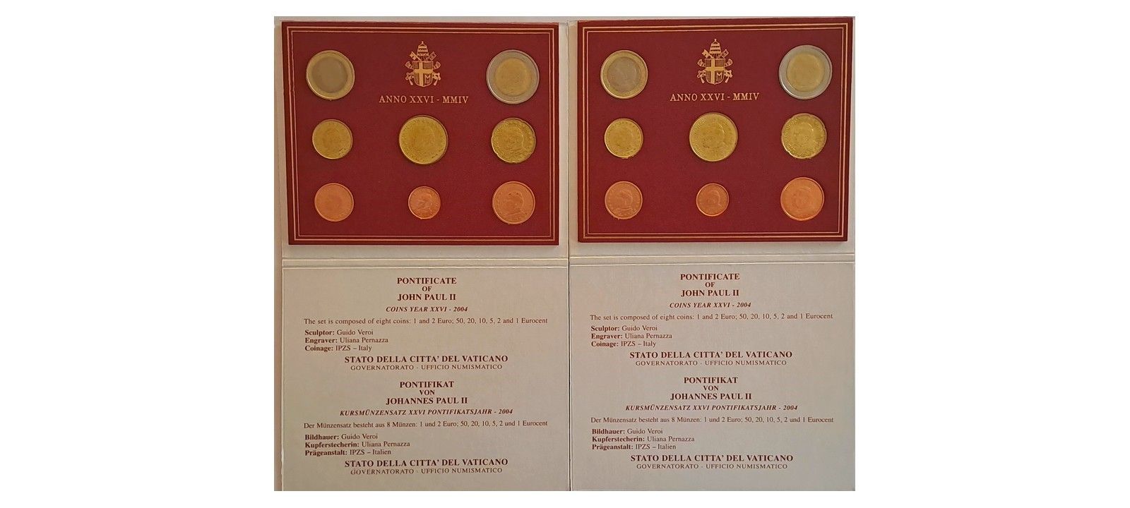 Vaticano 2004 - 2 divisionali Euro FdC.
