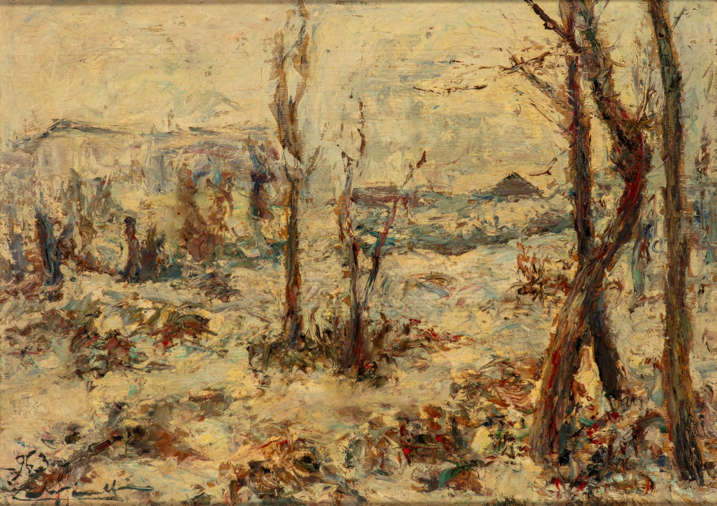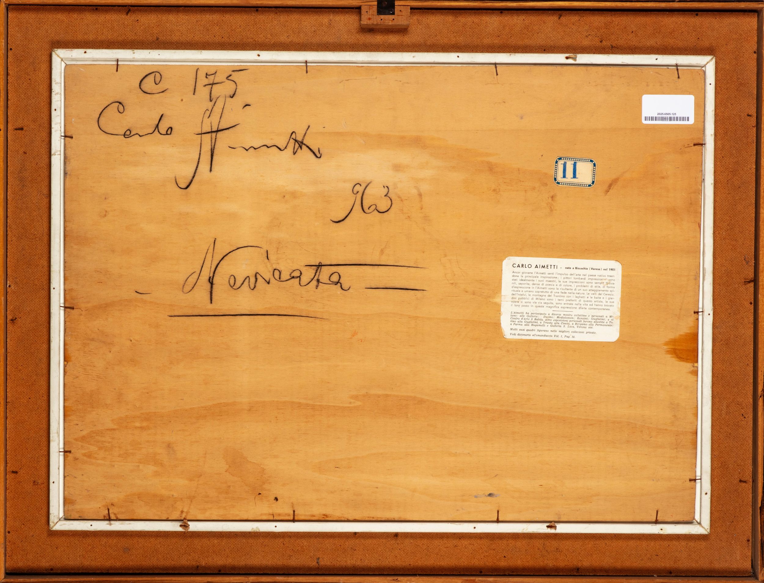 1963 firmato e datato in basso a sinistra: 963 / Carlo Aimetti al retro, sul compensato, firmato, titolato e datato