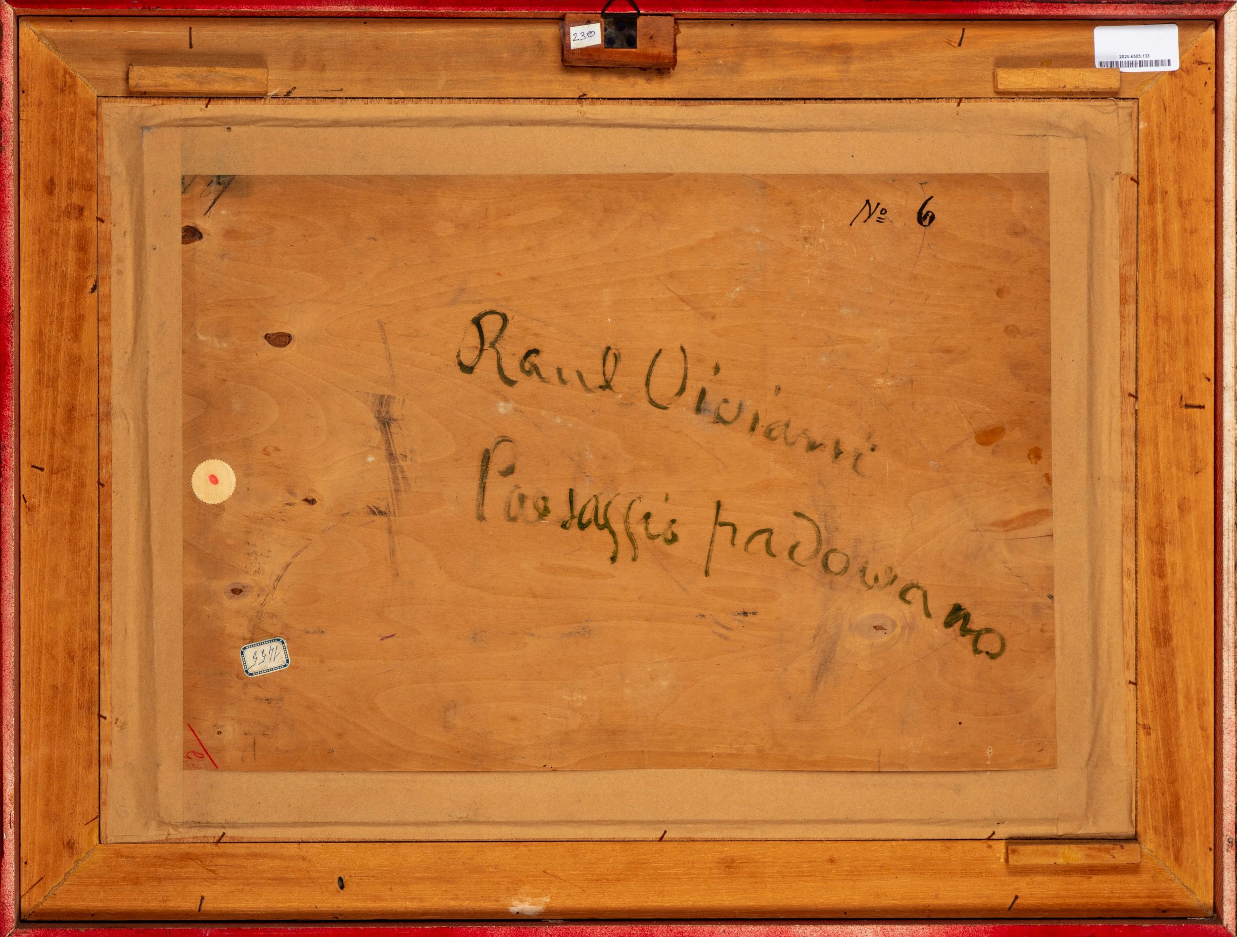 firmato in basso a sinistra: Raul Viviani al retro, sul compensato, titolato e firmato