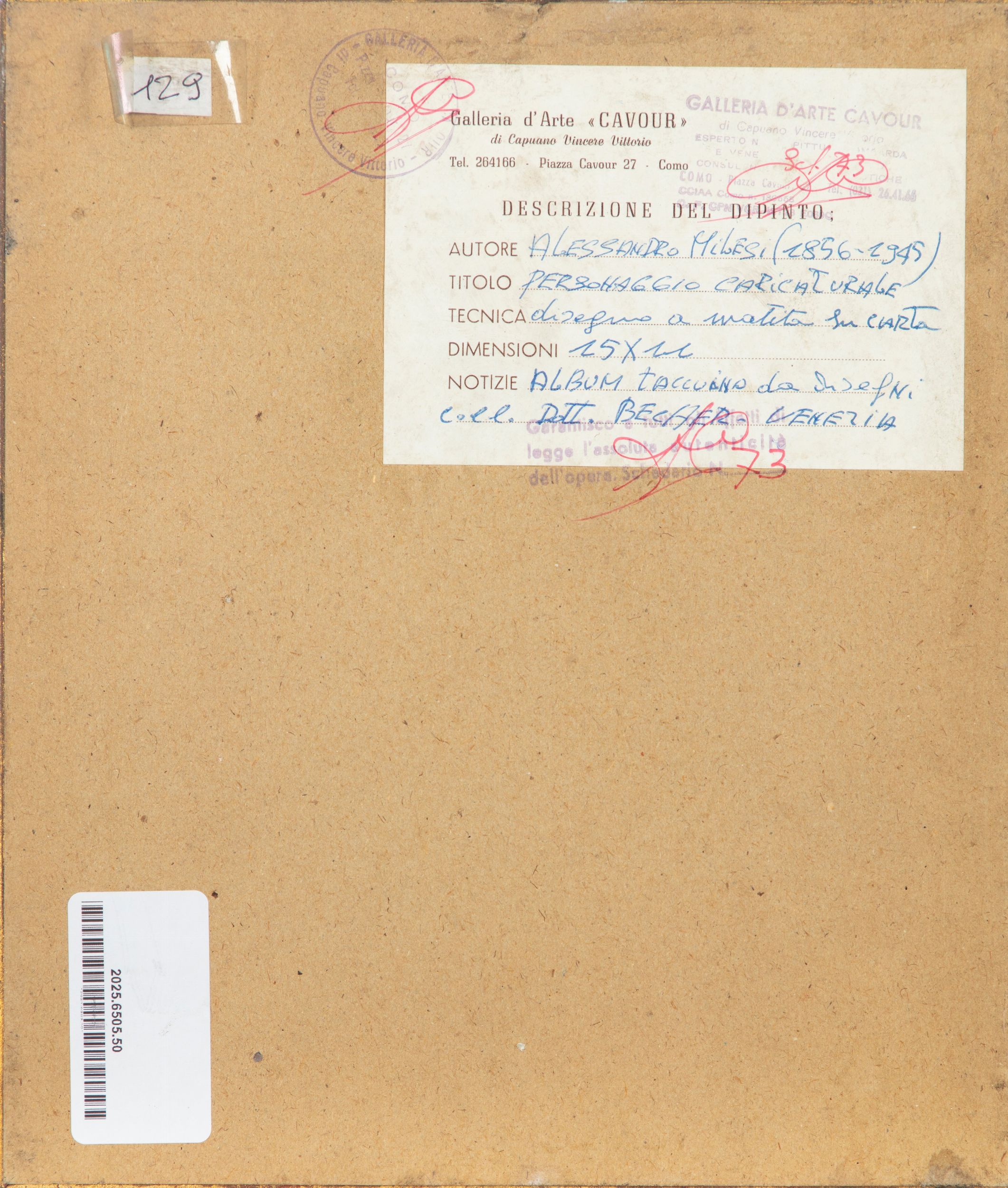 firmato in basso al centro: A Milesi al retro, etichetta e timbro della Galleria d'Arte Cavour di Como