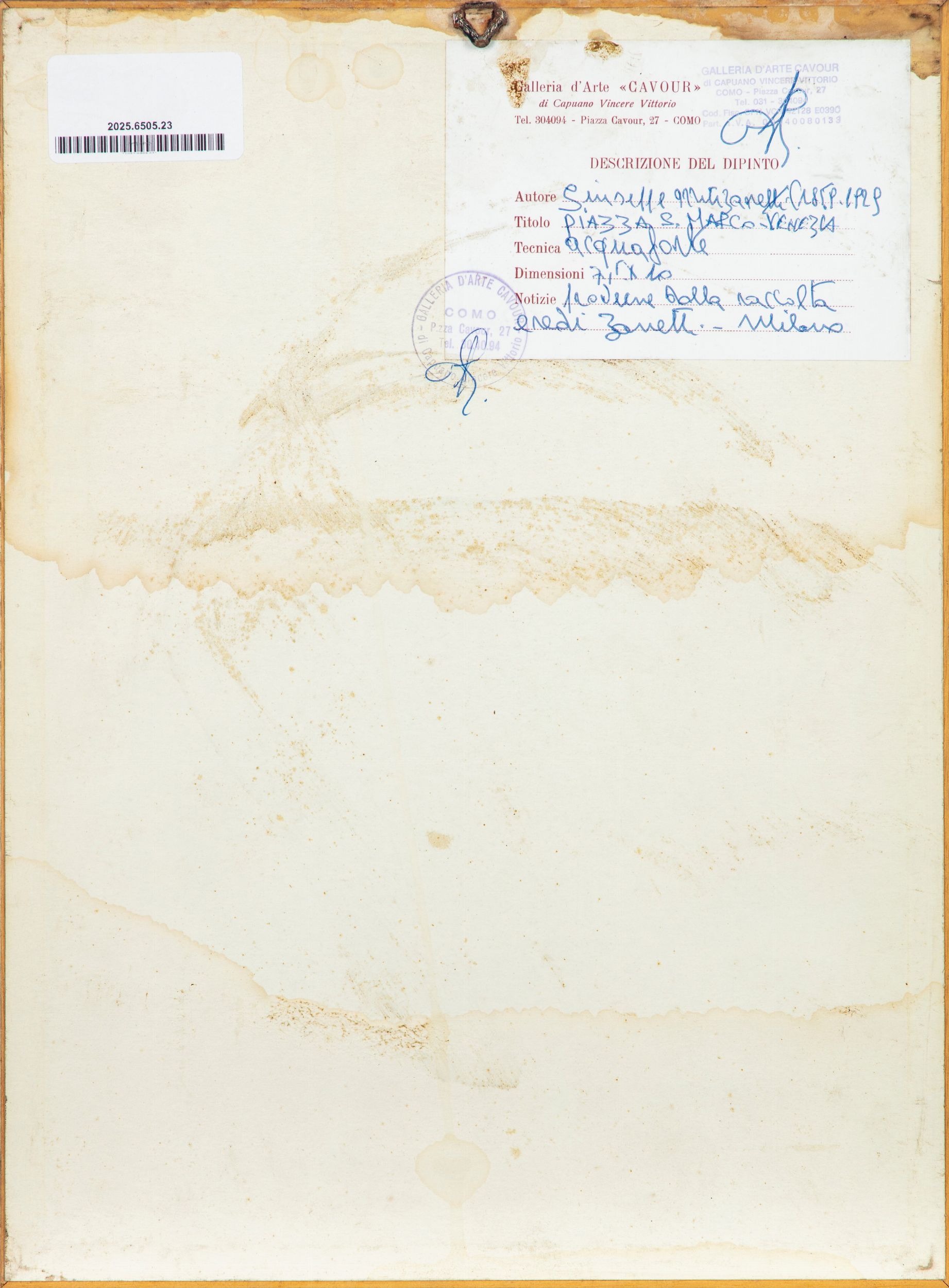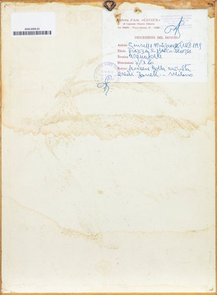 firmata a penna fuori dall'impronta: G. Miti Zanetti al retro etichetta e timbro della Galleria d'Arte Cavour di Como
