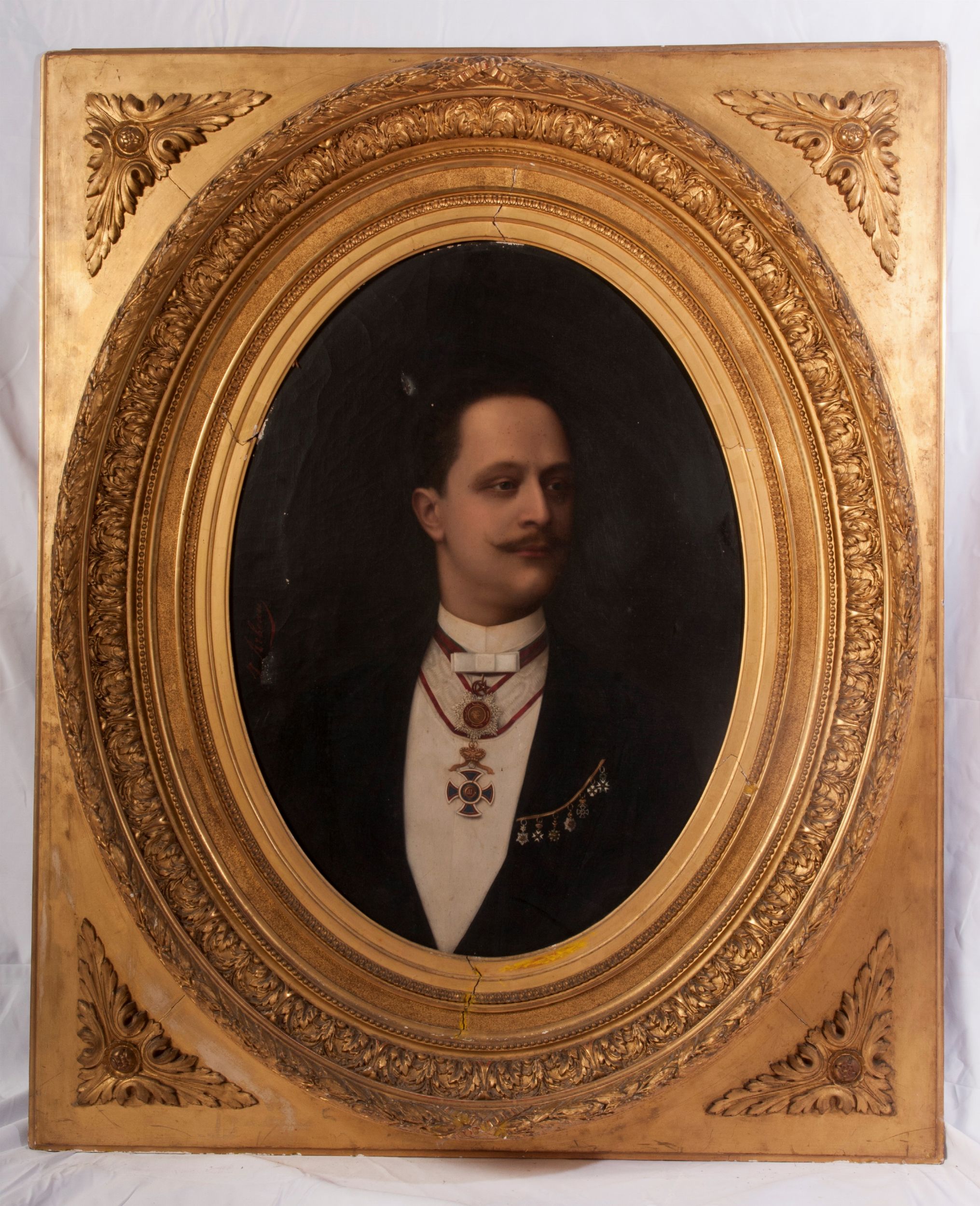 scuola francese, seconda metà XIX secolo ad assetto ovale, firmato in cornice dorata a triplo ordine di intaglio coeva Stato di conservazione: buono con un foro ed una mancanza, cornice con minime mancanze ed usure.