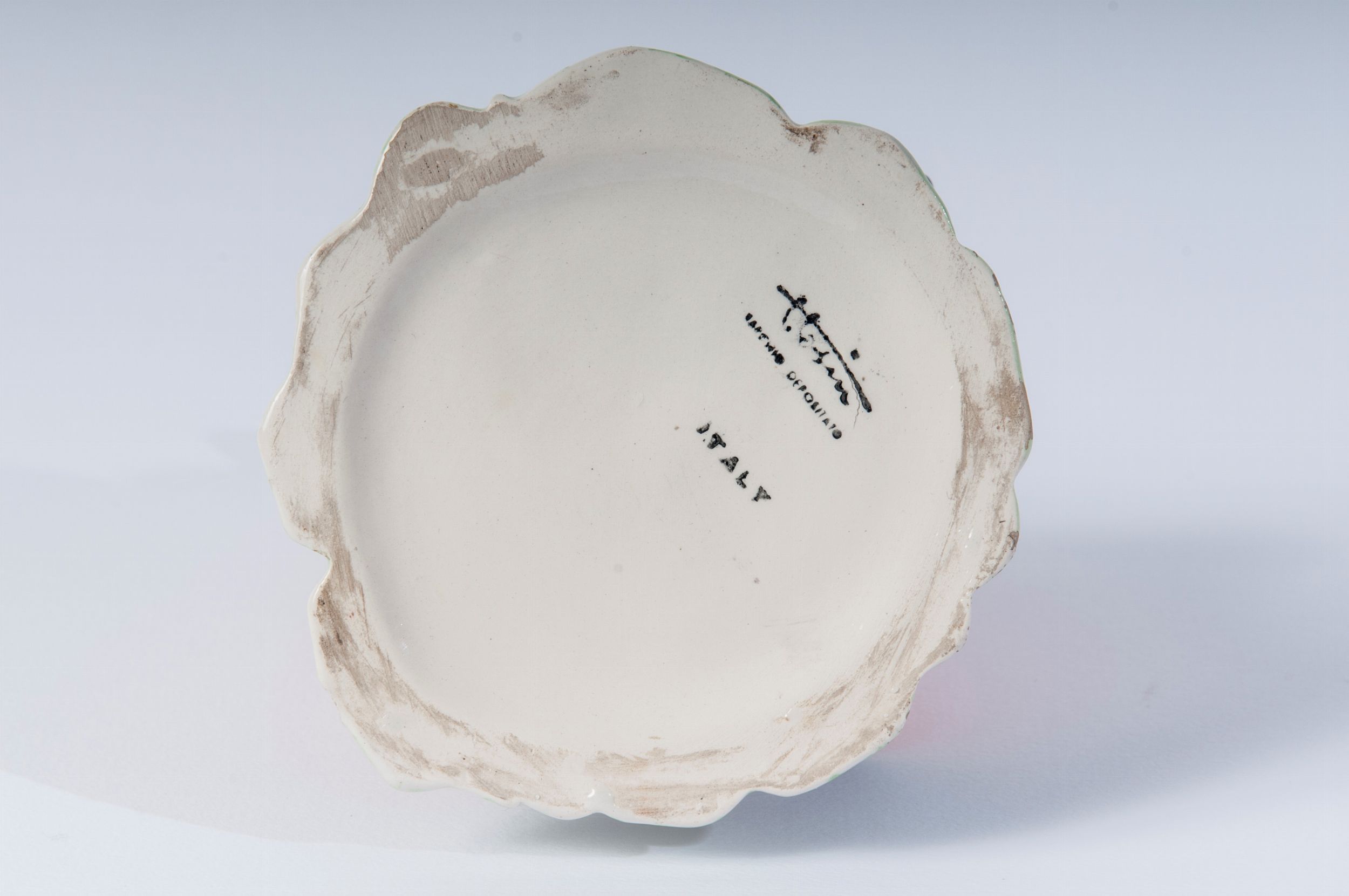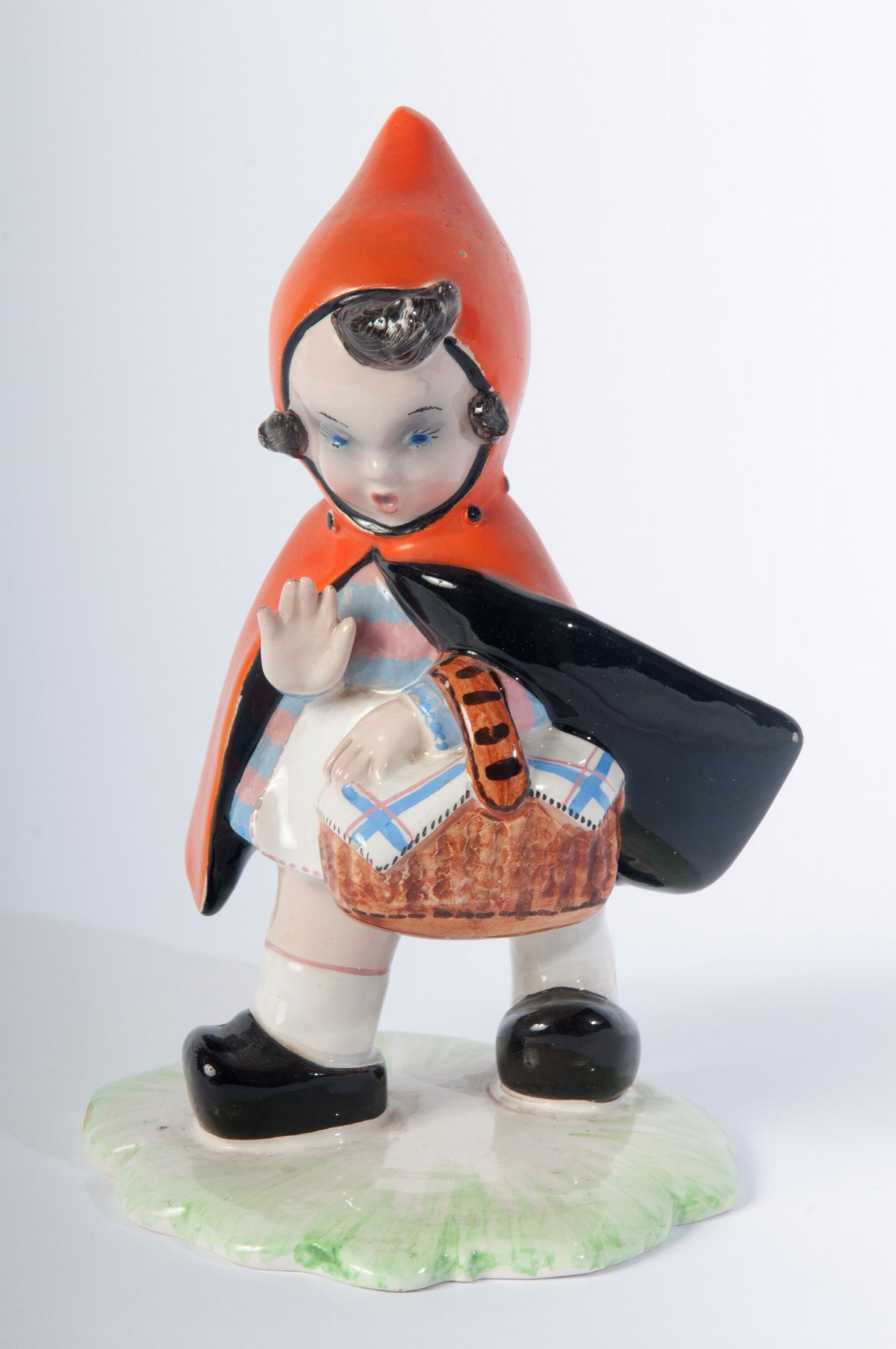 metà XX secolo scultura a colaggio in ceramica policroma a tutto tondo. Firma sotto e al retro sopra la base. Stato di conservazione: minime cadute di smalto sul mantello e sulla frangetta dei capelli.