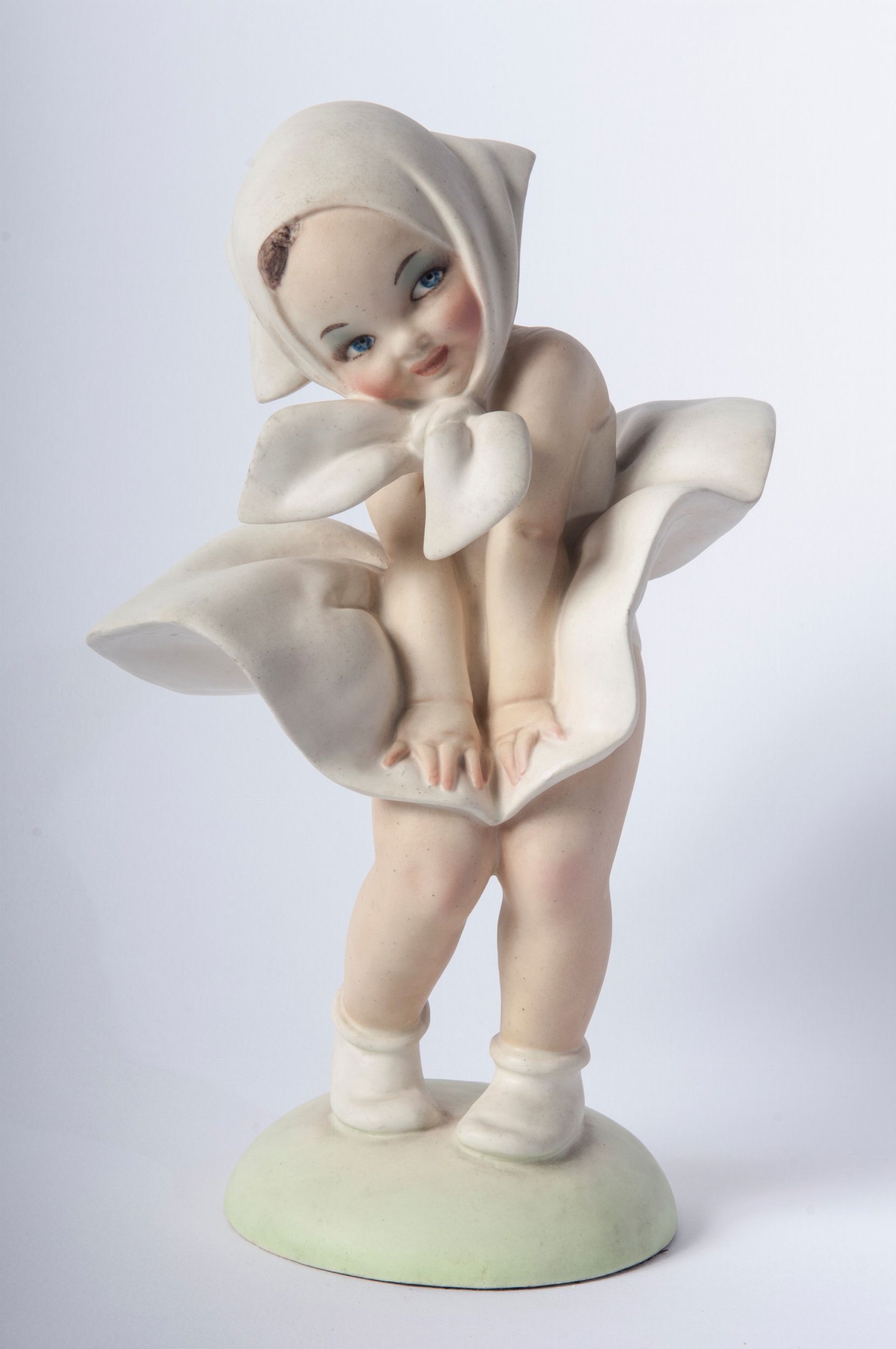anni '30 scultura a colaggio in ceramica policroma a tutto tondo.  Manifattura Guido Cacciapuoti, firma incussa nella pasta al retro Stato di conservazione: molto buono