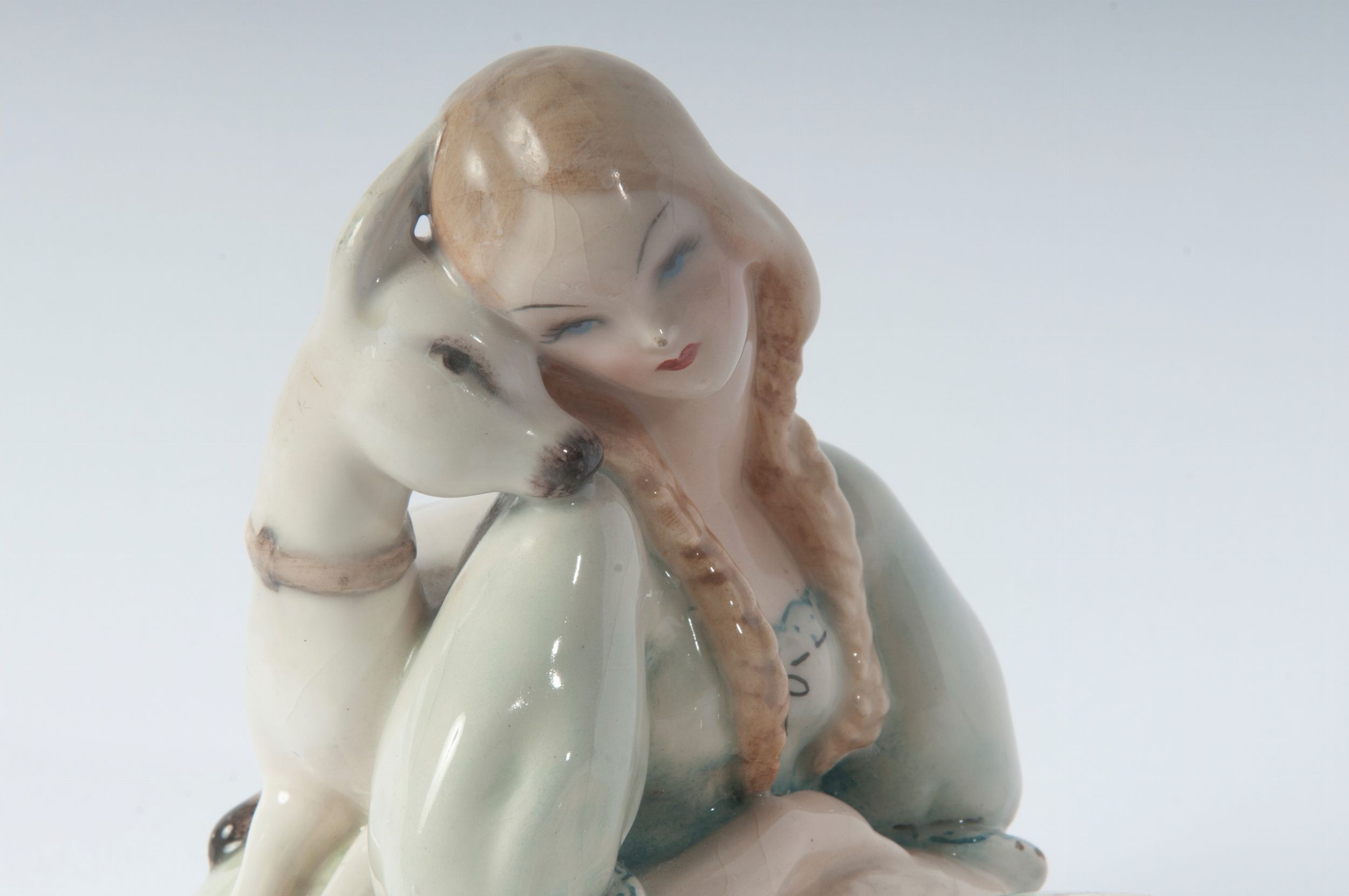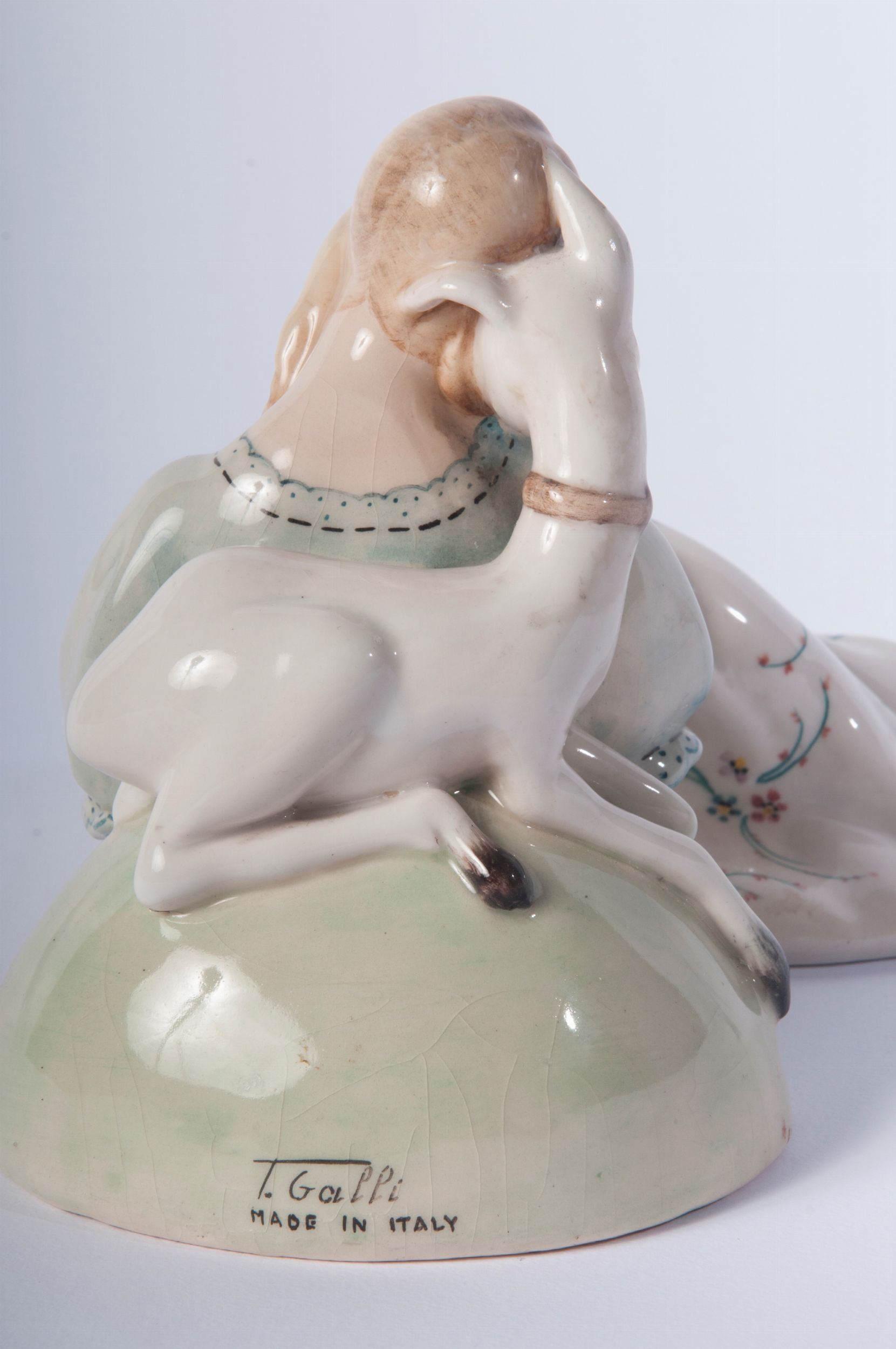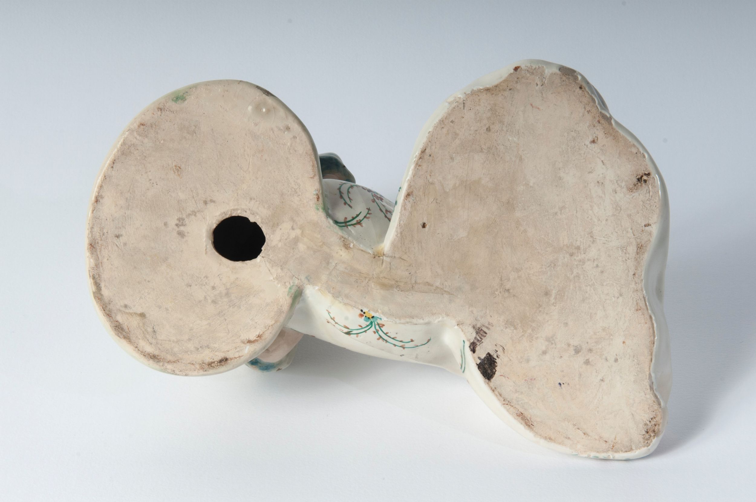 anni '40 formatura a colaggio, scultura a tutto tondo in ceramica policroma Firma della manifattura in nero sotto smalto al retro. Stato di conservazione: molto buono, minima mancanza allo smalto lungo il bordo della base.