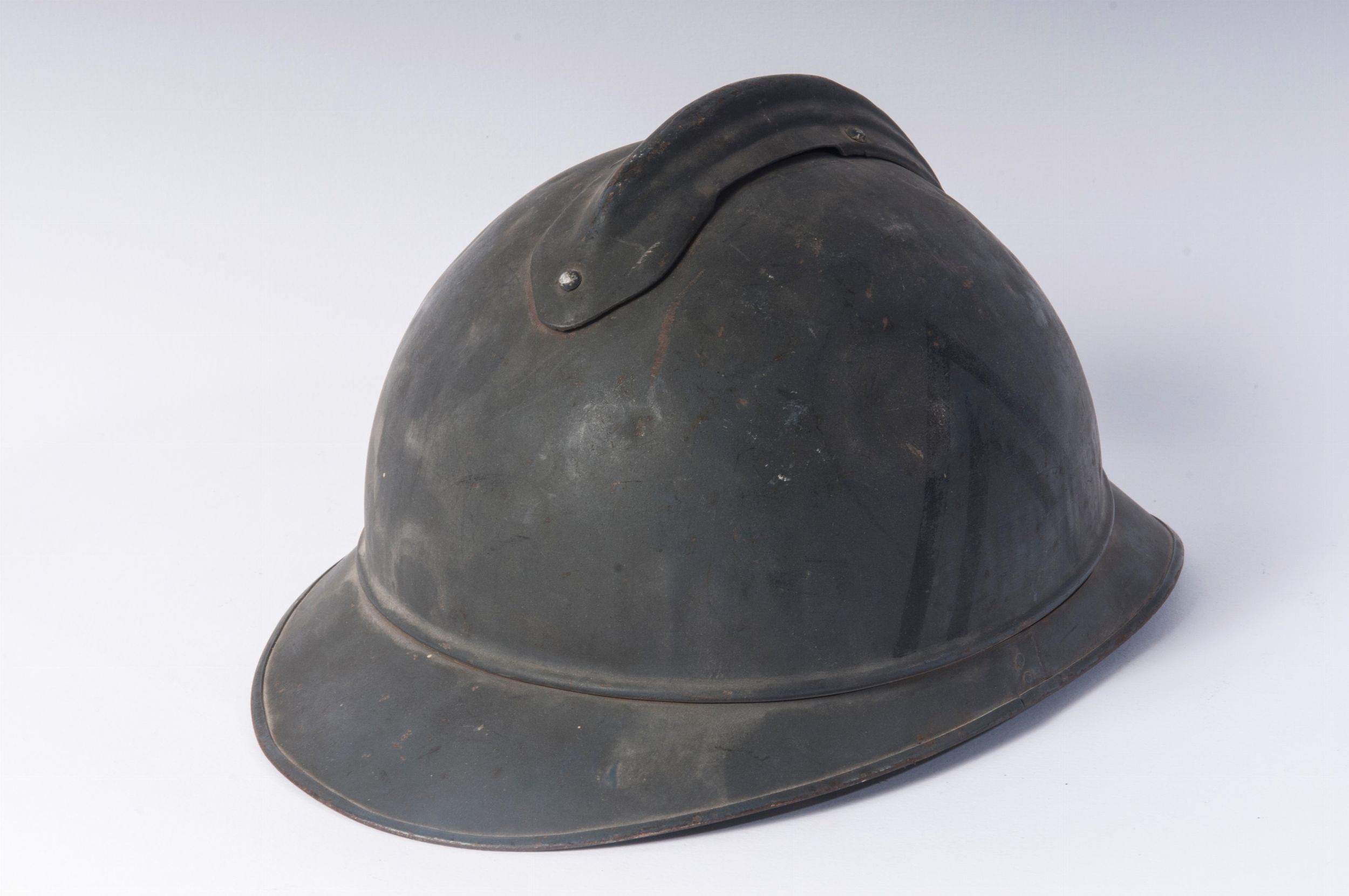 1915 modello 1915 'Adrian', da campo maschile. Di produzione francese ed in dotazione anche all'esercito italiano,è composto da calotta, visiera, coprinuca e crestina copri sfiatatoio. L'elmetto è sprovvisto di sottogola. Stato di conservazione: minime abbozzature sulla calotta e sulla visiera.