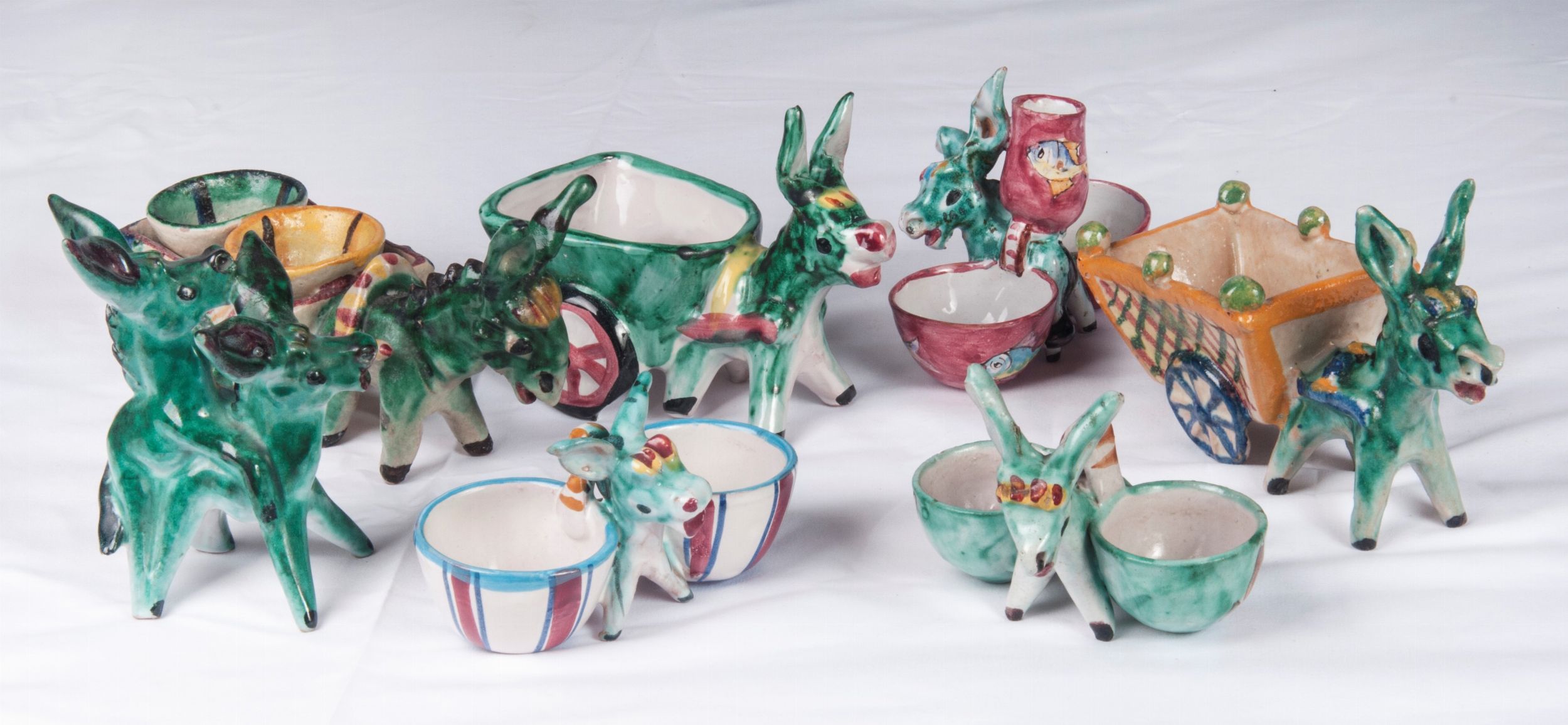 Vietri, metà XX secolo in ceramica policroma a forme e dimensioni differenti. Non marcati ma riferibili a produzione vietrese. Stato di conservazione: molto buono