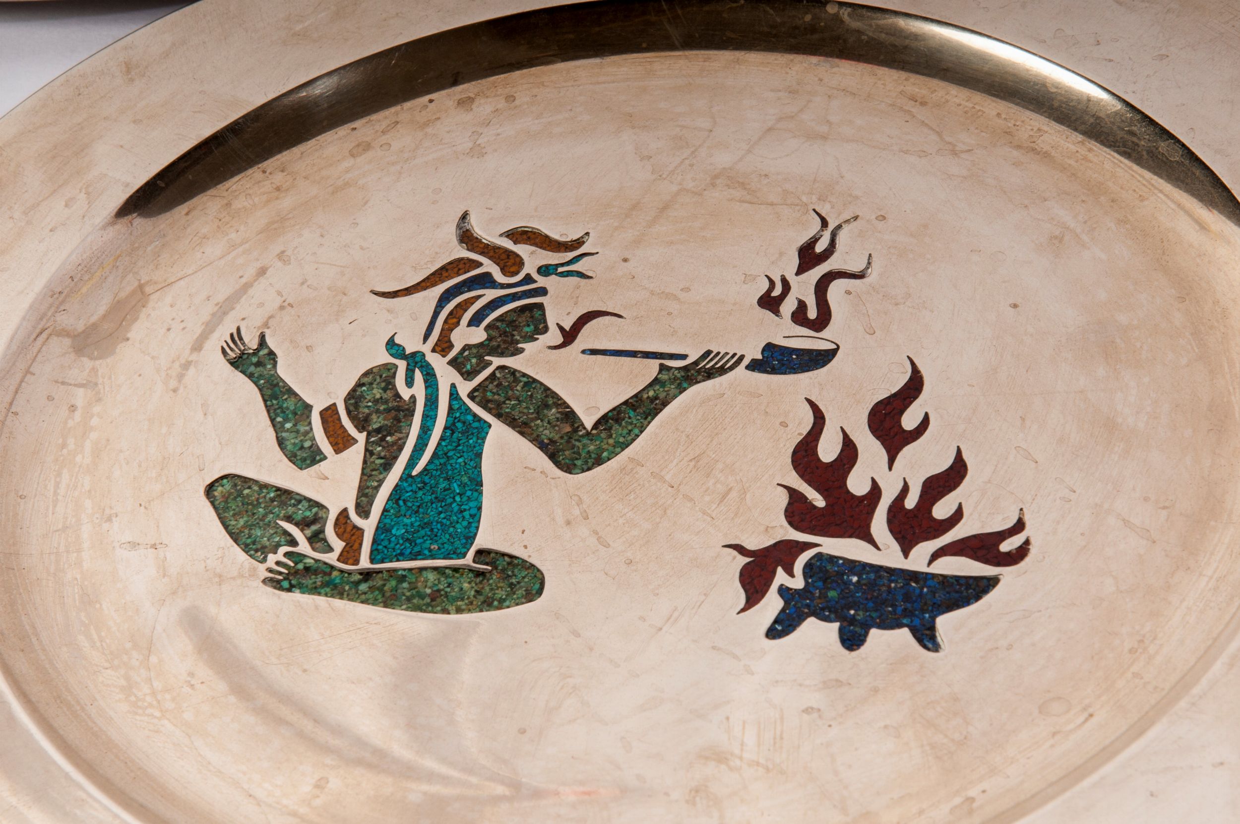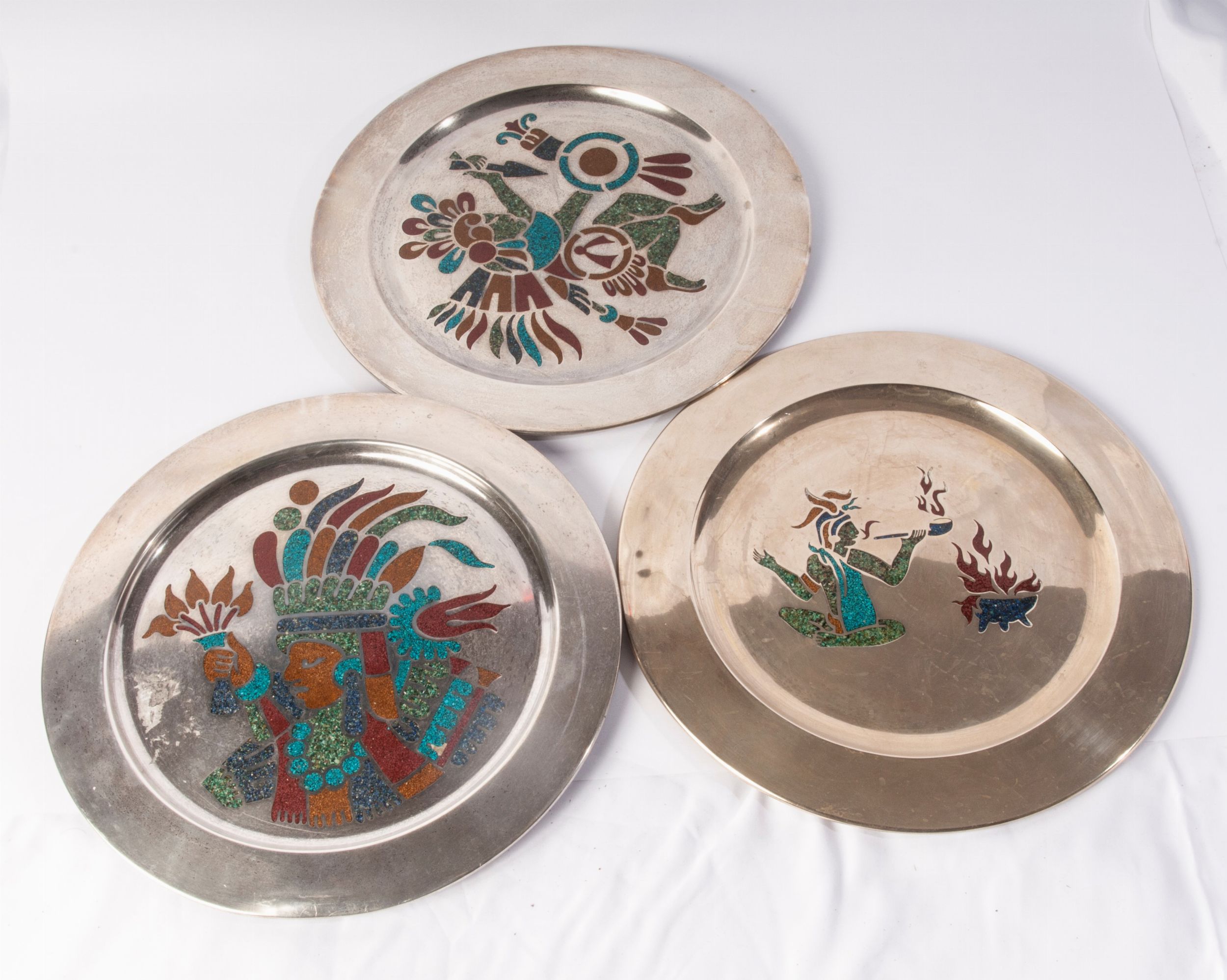 seconda metà XX secolo con figure tratte dal repertorio Atzeco al centro del fondo. Gr. lordi 1574 Stato di conservazione: un piatto presenta una piegatura.