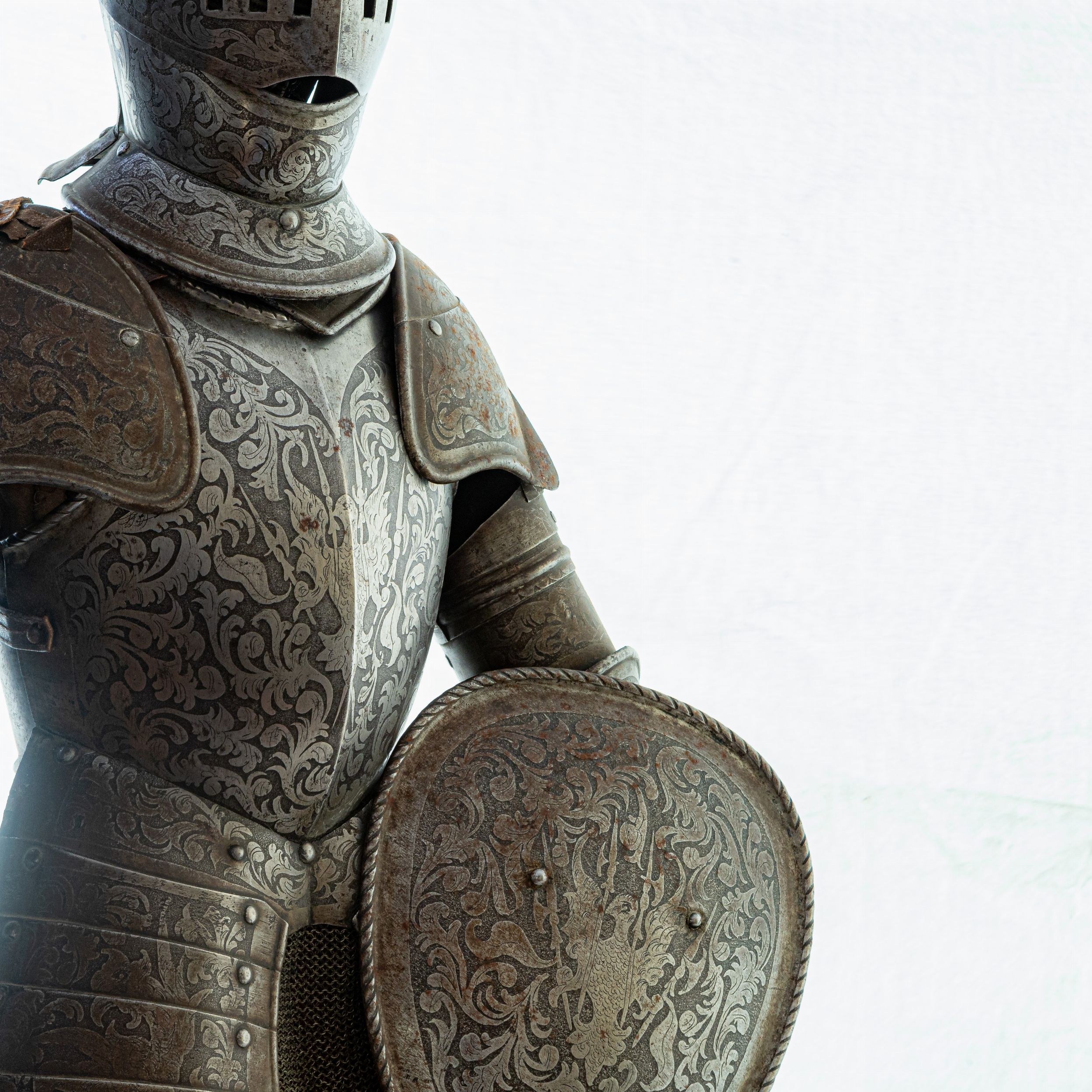 fine XIX inizi XX secolo in ferro brunito, parti incise, con scudo ovale. Stato di conservazione: lieve usure commensurate all'uso nel tempo.