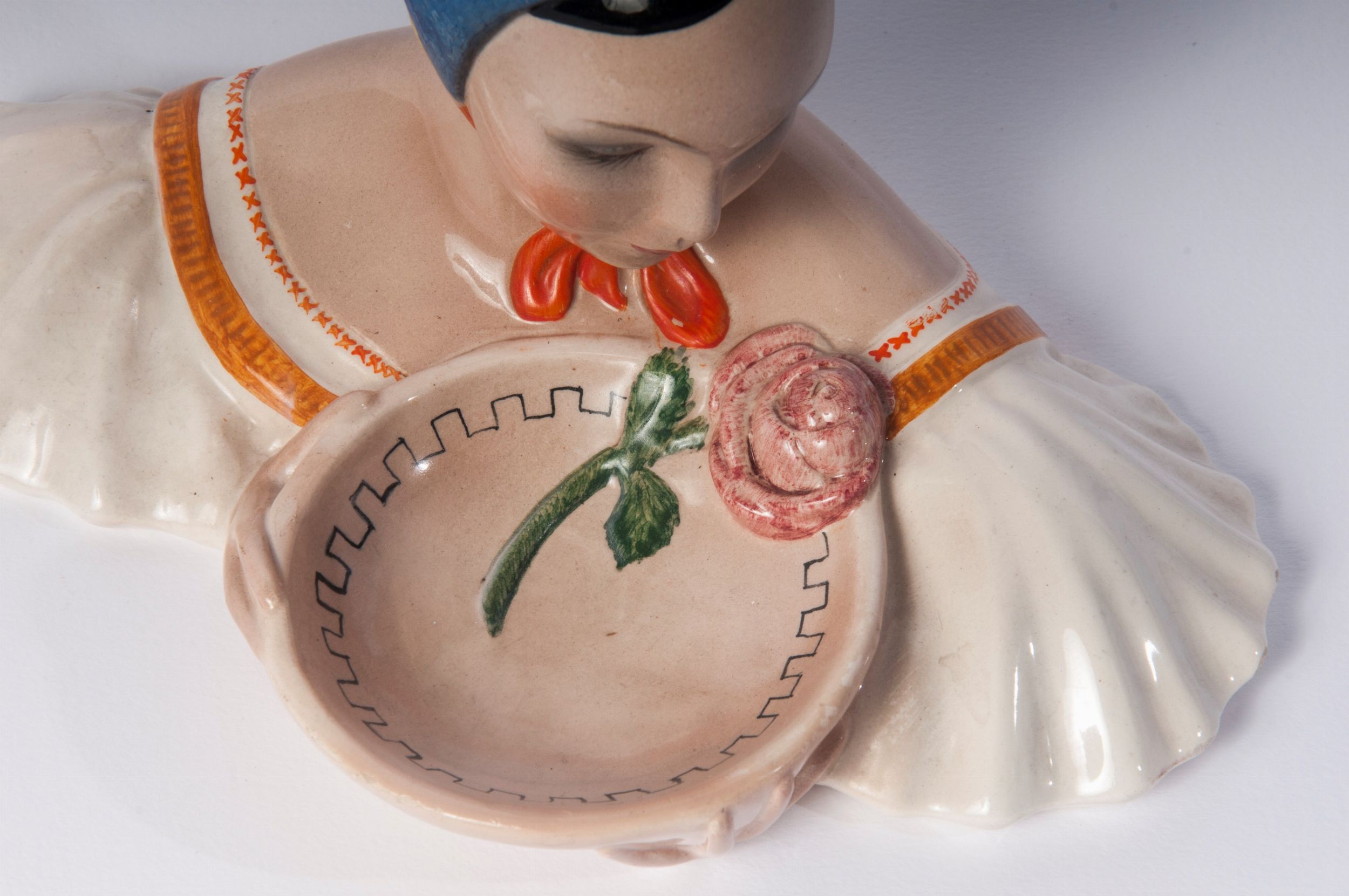 anni '30 scultura a colaggio in ceramica policroma a tutto tondo.  Firma e numero di modello in nero sotto smalto alla base. Stato di conservazione: molto buono