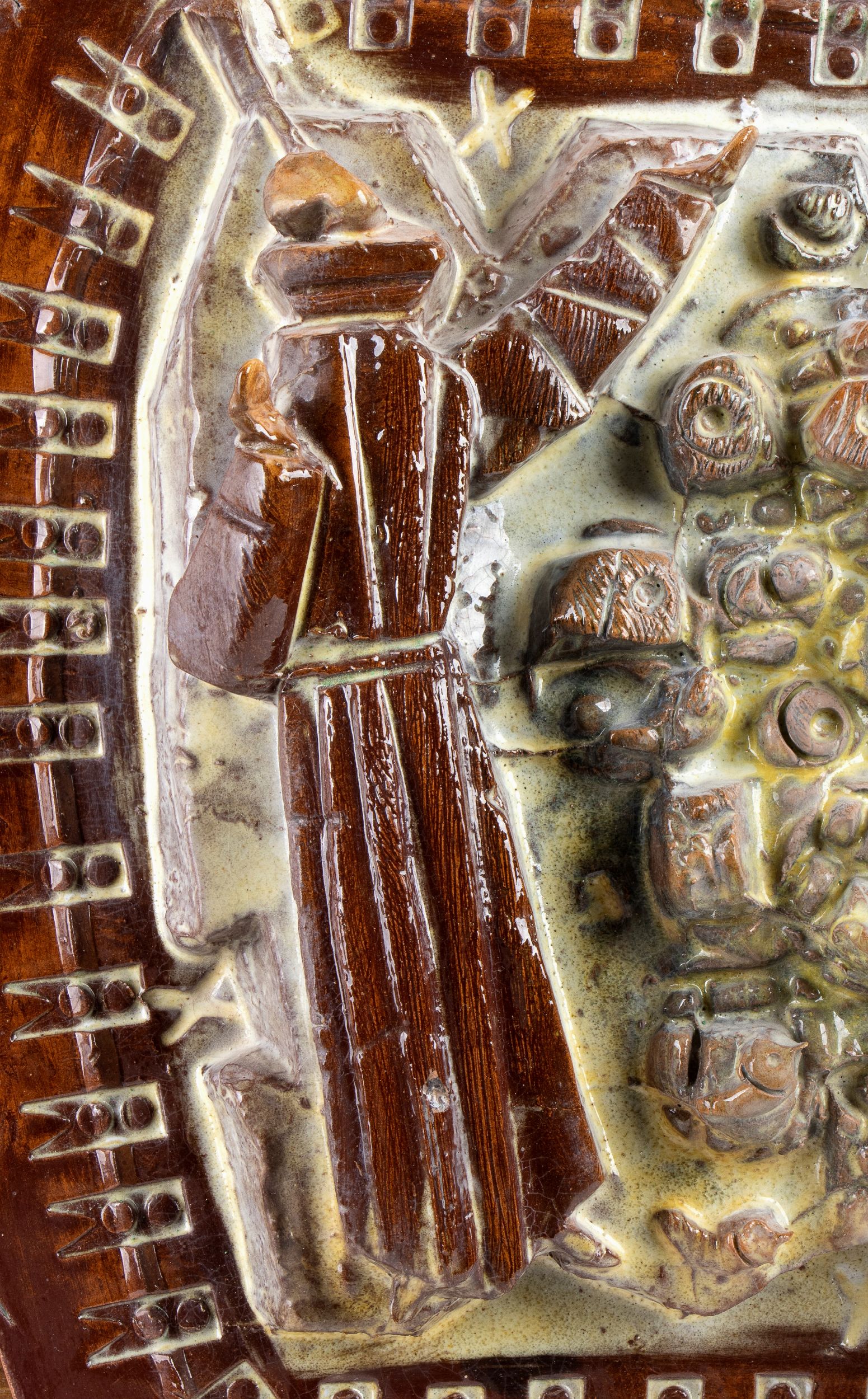 Seconda metà XX secolo Applicato su base in legno, firma incussa in basso al centro: A. Biancini, Faenza