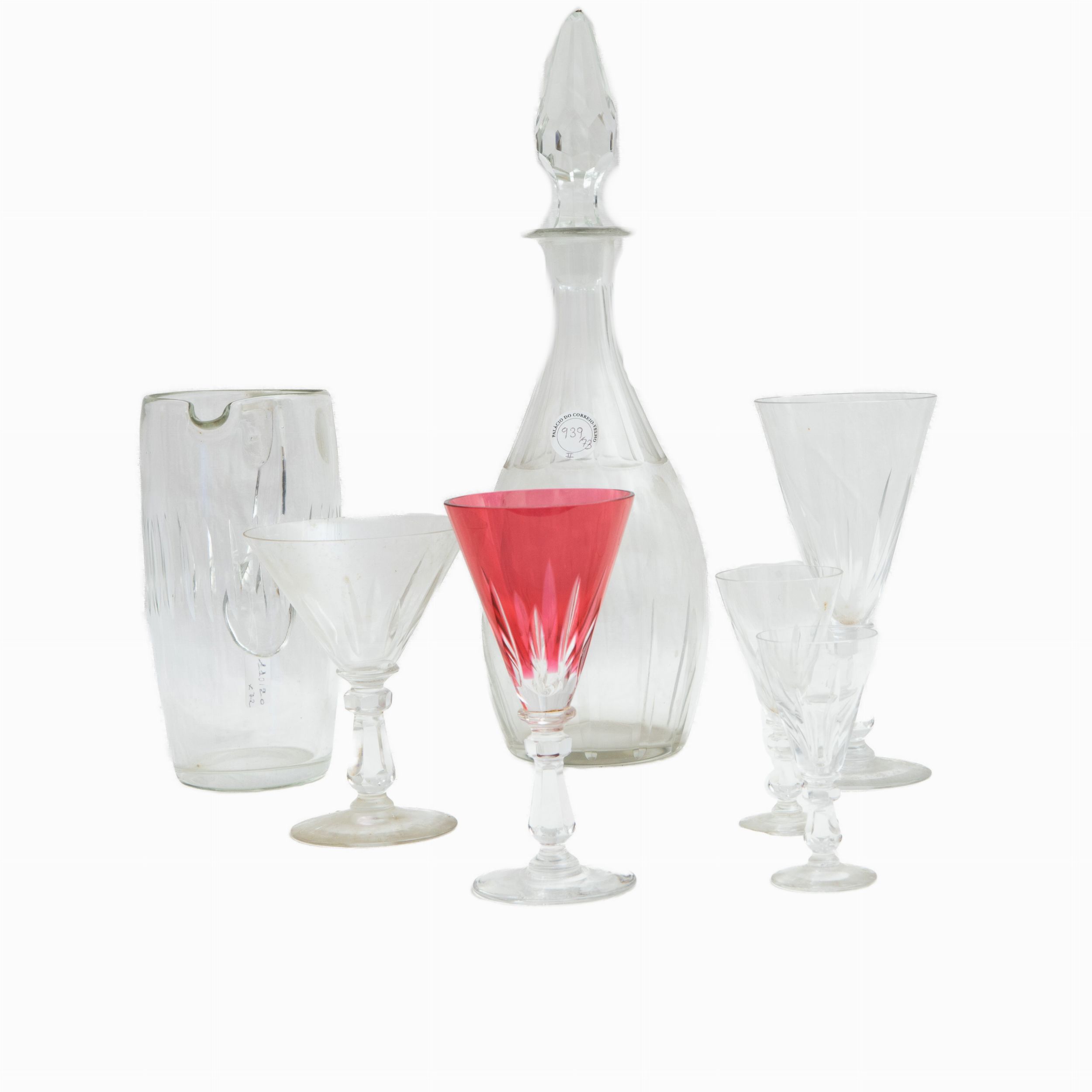 Servizio di bicchieri in cristallo bianco e rosso in sei diverse misure