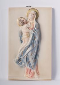 26,5 x 37 x 7 cm metà XX secolo scultura a colaggio in ceramica policroma. Manifattura probabilmente Marcello [..]