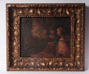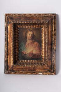 dipinto ad olio su tavola, 21 x 17 cm XIX secolo di forma ottagonale entro cornice di legno ebanizzata. Stato [..]