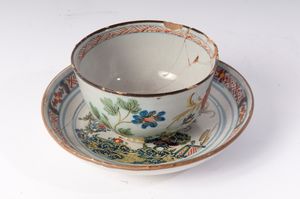 seconda metĂ XVIII secolo in ceramica policroma delle quali: tazza a campana con piatto en suite, decoro 'a garofano' [..]