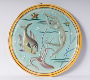 36 x 2 cm fine anni'30/ inizi '40 formatura a stampo in ceramica policroma. Manifattura AMBA Torino, firma [..]